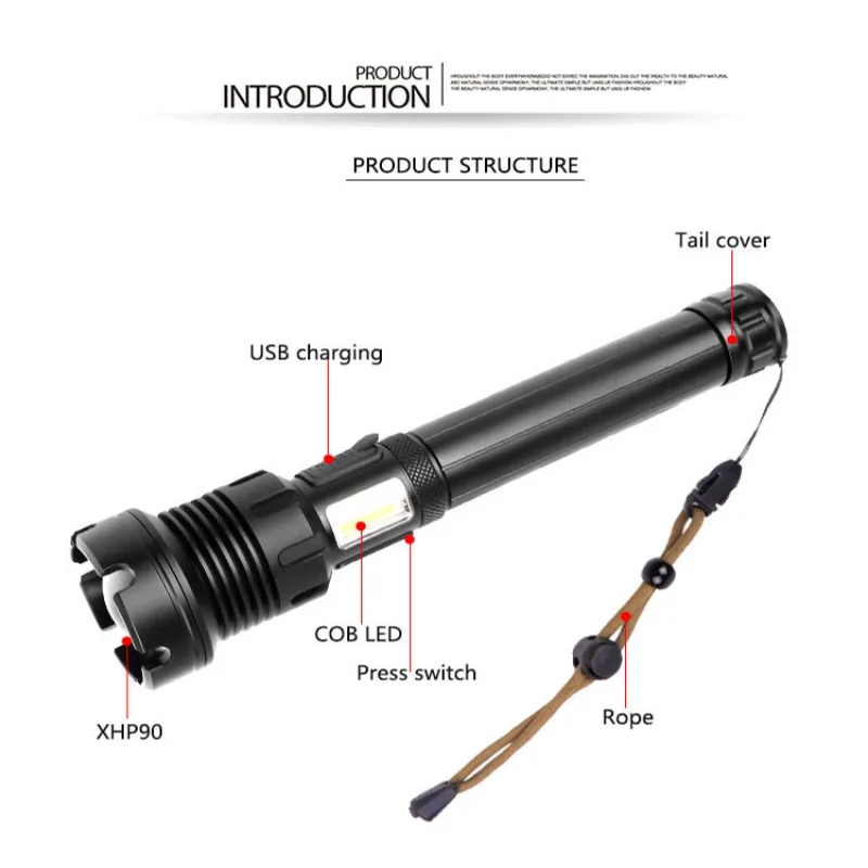 Название: P90 + COB длинный жесткий окислительный вход и выход сильный светильник-вспышка