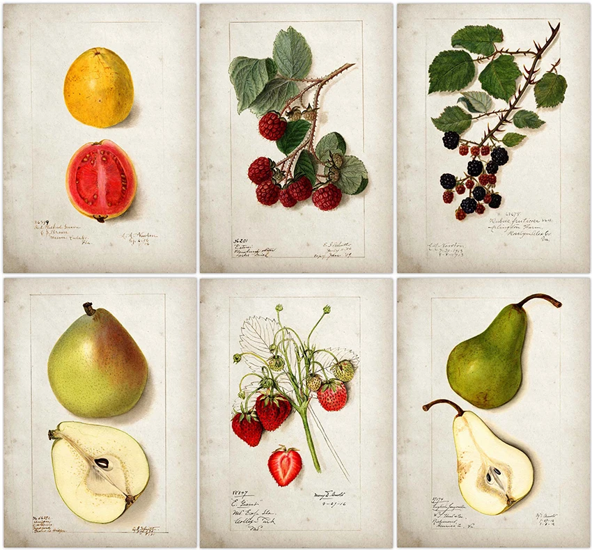 Фруктовый кухонный постер, винтажный постер, античная, груша, яблоко, апельсин, ананас, настенное искусство, декоративное изображение, крафт-бумага