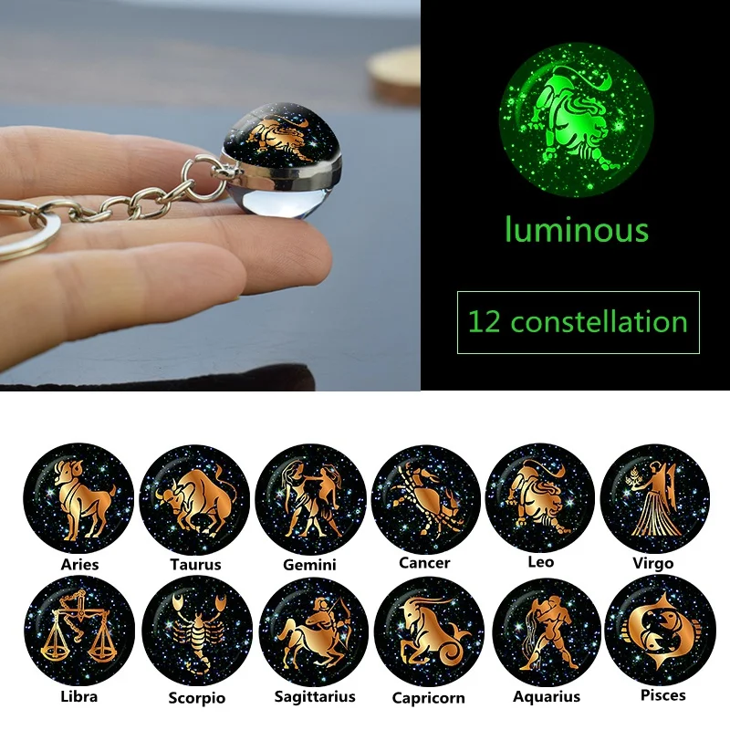 Светящийся брелок с 12 созвездиями, подвеска со стеклянным шариком,...