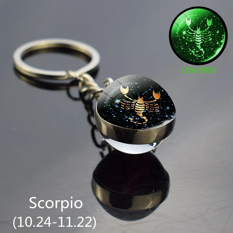 Светящийся зодиакальный брелок светится в темноте стеклянный шарик ...