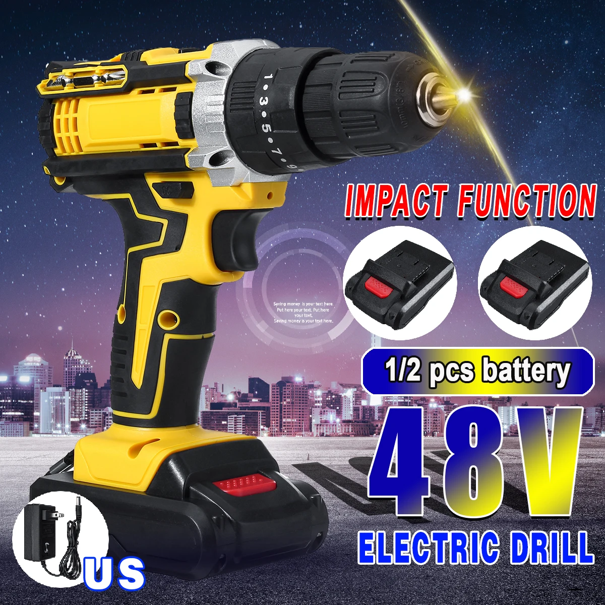 Дрель-шуруповерт ударная беспроводная, 48 В, 25 + 3 крутящих момента, 2 литий-ионных аккумулятора, 38 дюйма