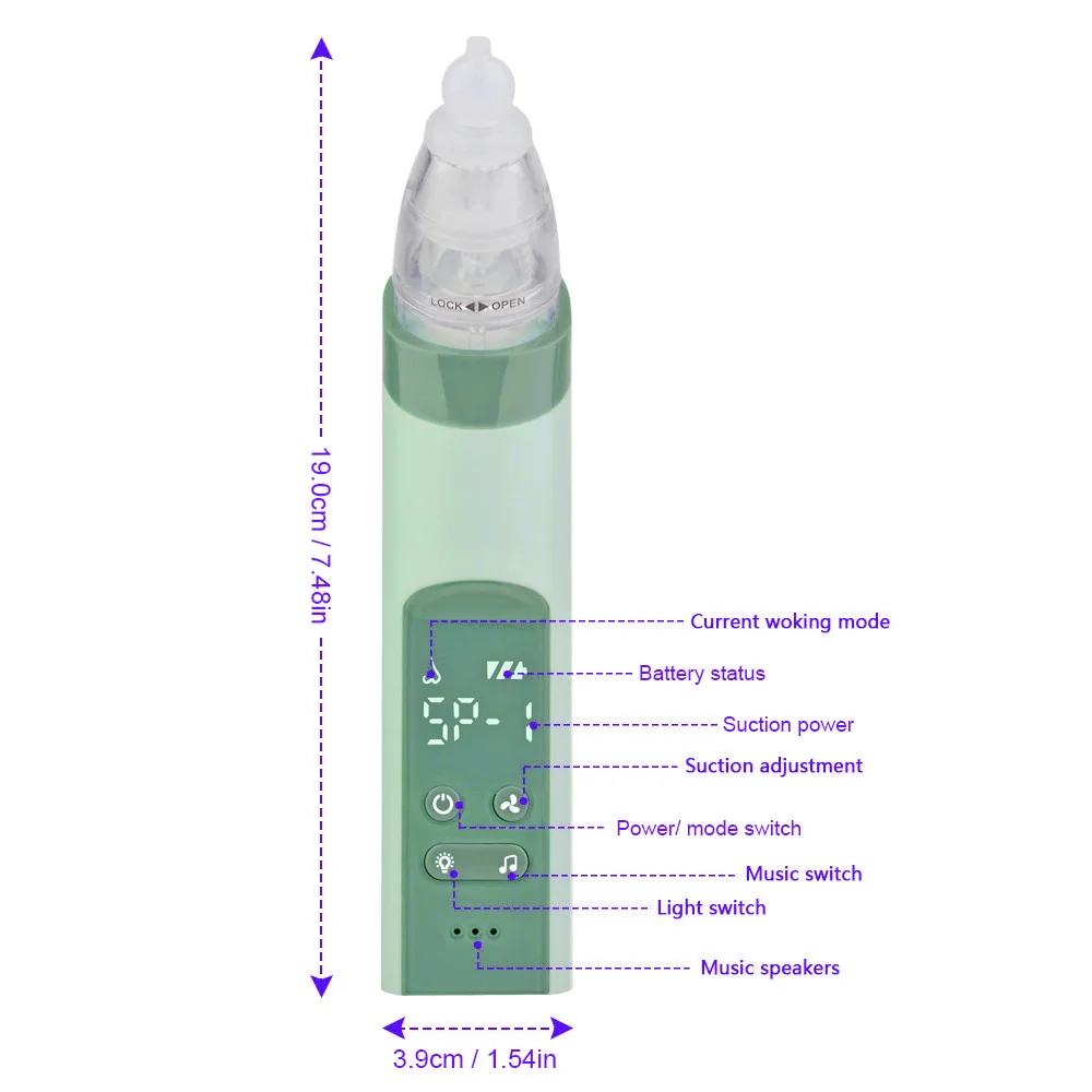 2 в 1 детский Назальный аспиратор и пылесос для удаления угрей, поставляется с 3 уровнями мощности всасывания и силиконовыми наконечниками, которые подходят для разных пользователей и предпочтений. Оснащен светодиодный экраном, вспышкой и музыкой, чтобы успокоить детей. Особенности: 3 уровня мощности всасывания можно отрегулировать и выбрать, простой и практичный для удовлетворения различных потребностей. Поставляется с 4 сменными головками зонда, которые можно превратить Назальный аспиратор в вакуум для удаления черных точек. Замечательная музыка и 3 вспышки, чтобы отвлекать внимание вашего ребенка, чтобы легко очистить душный нос. Назальный аспиратор может быть демонтирован на 4 части, просто очистите силиконовые наконечники и стаканчик коллекции с легкостью. Светодиодный дисплей четко показывает рабочий статус, оснащен коробкой для удобного хранения и переноски. Эргономичный дизайн позволяет сосать под разными углами и легко захватывать. Примечание: цвет изделия может немного отличаться из-за различий в настройках мониторов. Спасибо! Характеристики: Цвет: зеленый/белый (по желанию) Материал: АБС + ПП + пищевой силикон Экран: светодиодный Сила всасывания: 65 кПа Встроенный Батарея: 1*3,7 V 700 мА/ч, литий Батарея Товар Размеры: 3,9*6,0*19,0 см/1,54*2,36 * 7.48in Вес изделия: 140 г/4,94 унций Размер посылка: 16,3*15,2*5,4 см/6,42*5,98*2,13 дюймов Вес посылка: 380 г/13,39 унций Посылка: 1 * хост 3 * всасывающий наконечник 4 * головка зонда для удаления угрей 1 * USB кабель 1 * коробка для хранения 1 * Руководство пользователя (на английском языке)