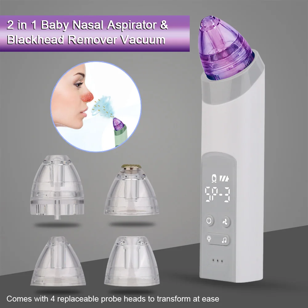 2 в 1 ребенка носовой всасывающее устройство прибор для вакуумной чистки лица Электрический Нос всасывающее устройство для прочистки носа у новорождённых с светодиодный экран, с сигнальным светом + музыка