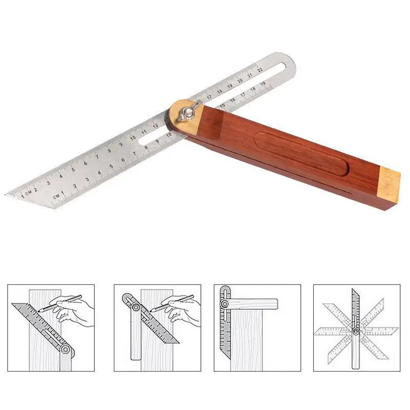 Линейка угловая 2 в 1, 8 дюймов, тройная квадратная скользящая Т-скошенная линейка, лезвие из нержавеющей стали, деревянная ручка, инструмент для измерения уровня