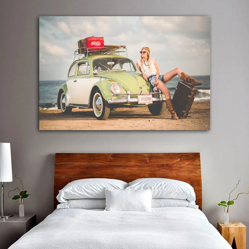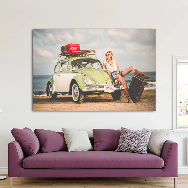 Пляж Жук старая машина модная модель девушка морской Жук обои печать картины на холсте настенный постер для декора гостиной