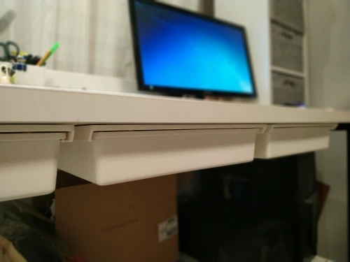 Мне нравится этот ящик, я использую его на своей кухне. В конце концов, я просверливал отверстия в верхней части, чтобы установить их с помощью винтов, но если вы не вкладываете в него ничего тяжелого, должно быть достаточно прилагаемого клея.