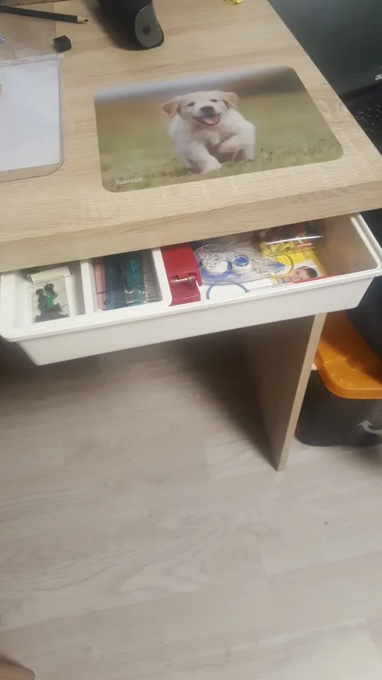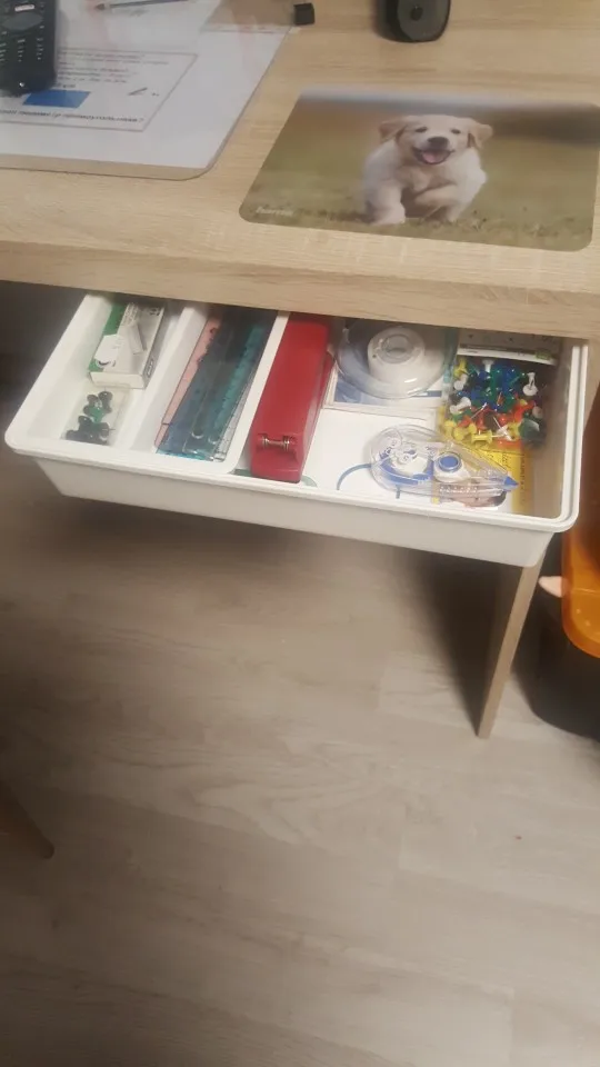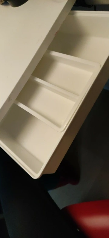 Всё, как на картинке. Есть пожелание к производителю. Надо что-то придумать, чтобы ящик можно было легче открывать. На нём нет никаких выступов, чтобы его можно было вытягивать из стола.