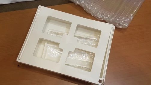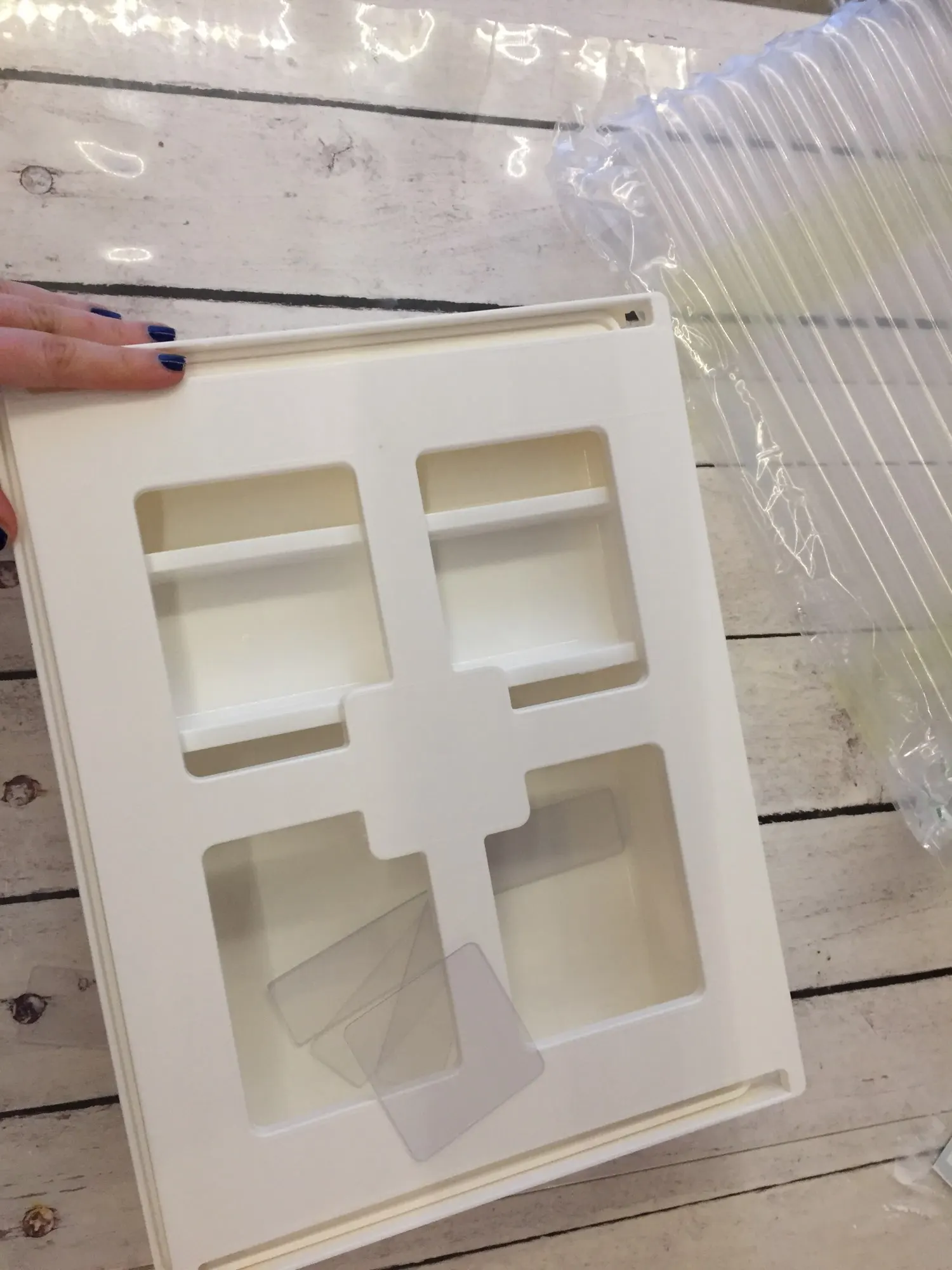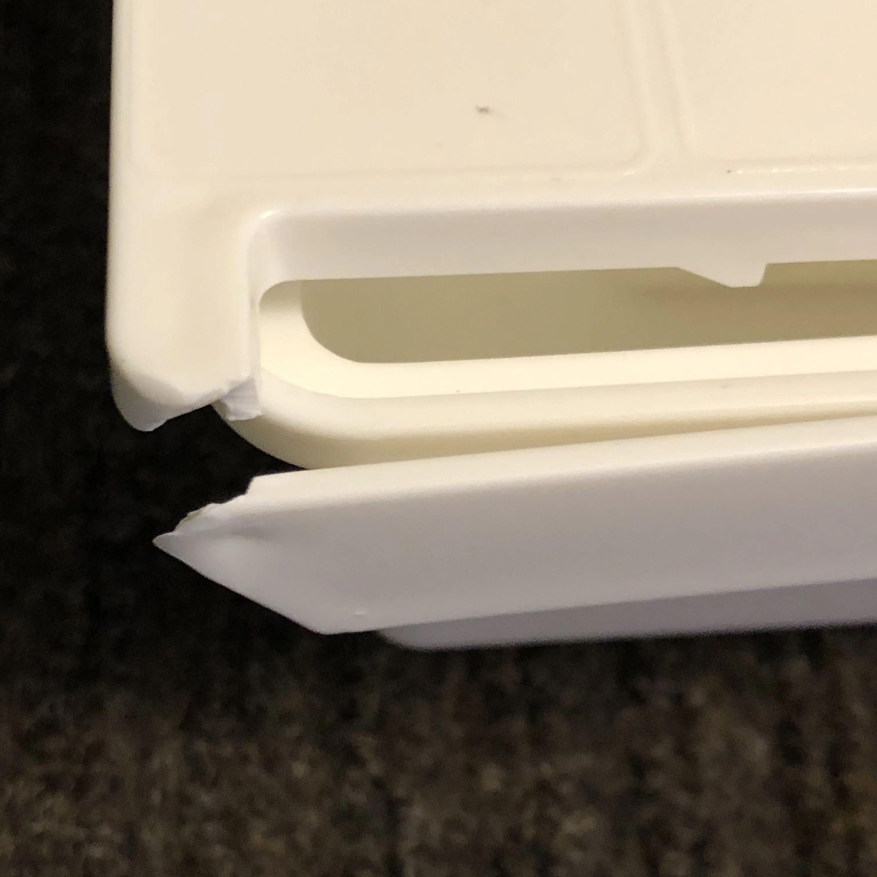 Он прибыл в идеальном состоянии. Это приносит некоторые наклейки, и это кажется очень легко надеть. Ящик имеет меньший отсек, который движется внутри большого ящика, поэтому он очень полезен для размещения мелких вещей. Я ожидал, что это белый, но нет, это как кремовый бежевый.