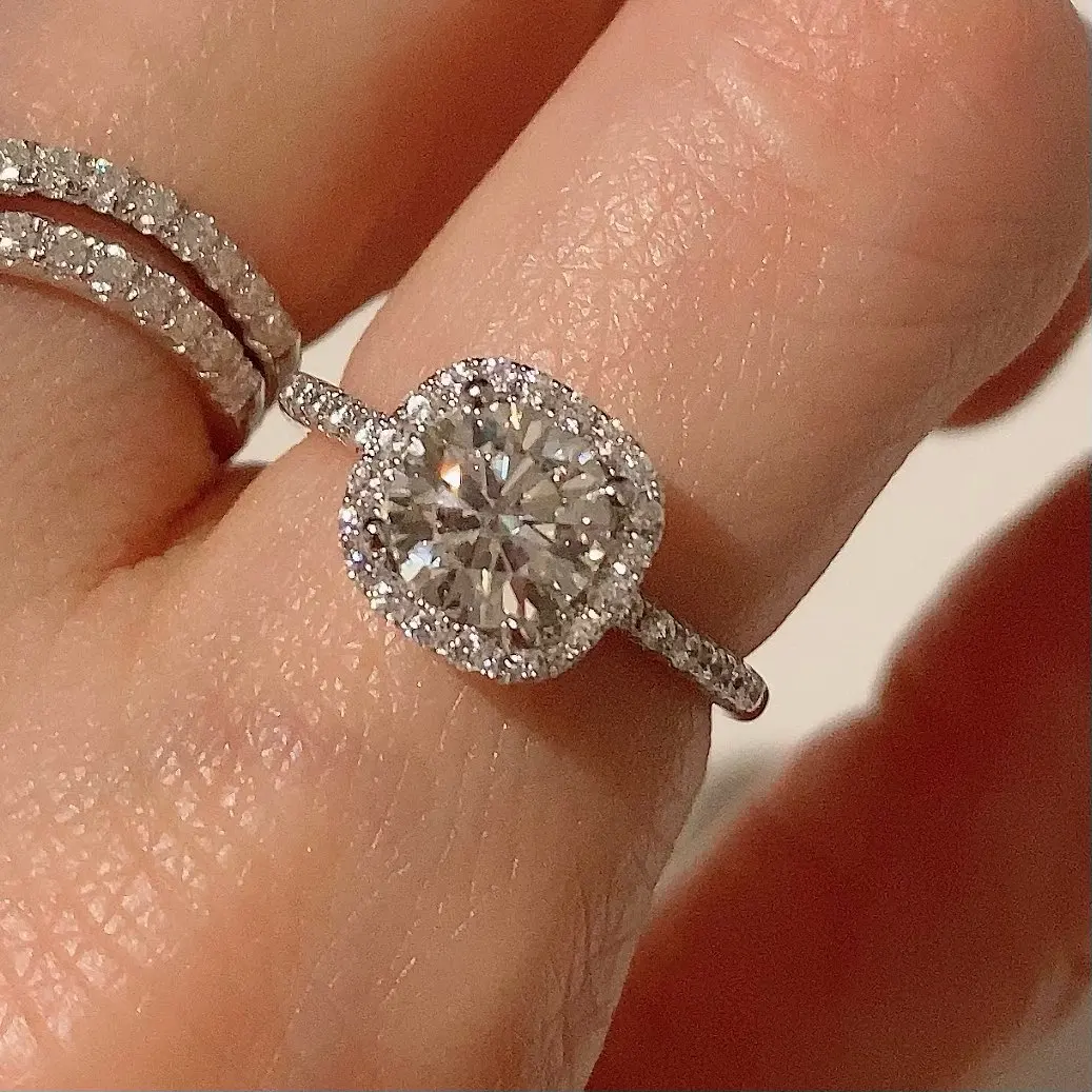 Женское Обручальное кольцо с муассанитом, с круглым кружевом 6,5 мм
