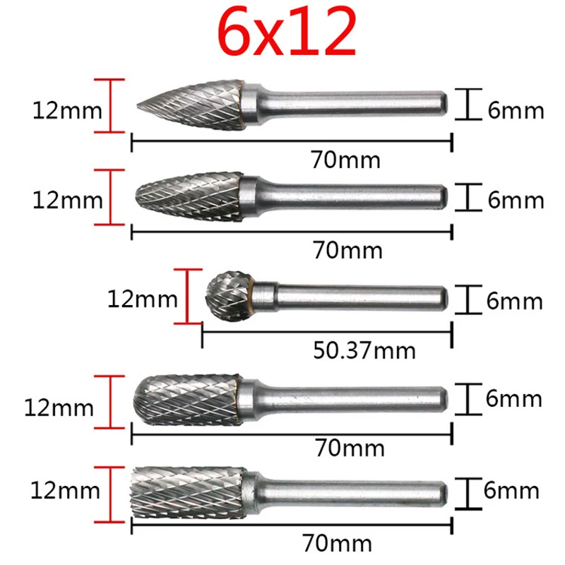 5 шт.компл., абразивные головки 12 мм, из карбида вольфрама