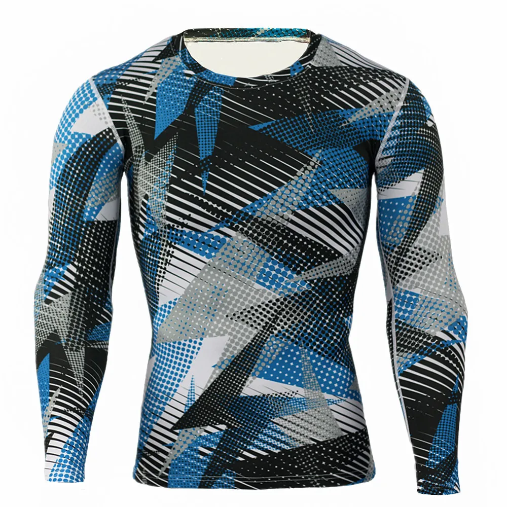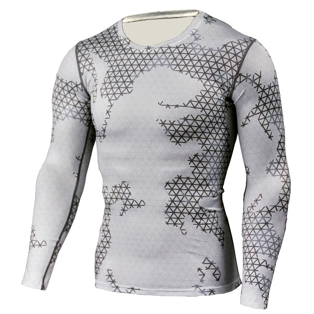 Новый костюм с футболкой с длинными рукавами, трико, одежда для фитнеса, мужской спортивный классный уличный Камуфляжный Быстросохнущий Спортивный костюм для бега