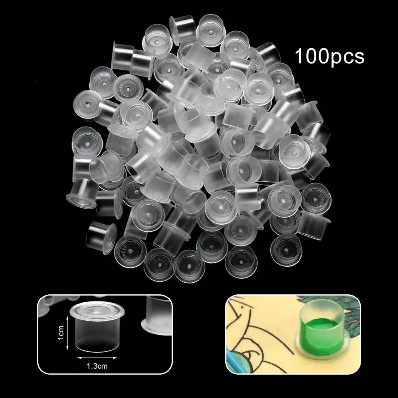 100 шт S/M пластиковые одноразовые микроблейдинг татуировки Чернила чашки держатель Перманентный макияж Пигмент прозрачный контейнер с крышкой татуировки аксессуар