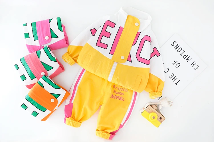 Спортивный костюм для малышей Спортивная одежда для девочек топ на молнии с надписью для маленьких мальчиков Новое поступление 2021 года, детская одежда с длинными рукавами 3 цвета