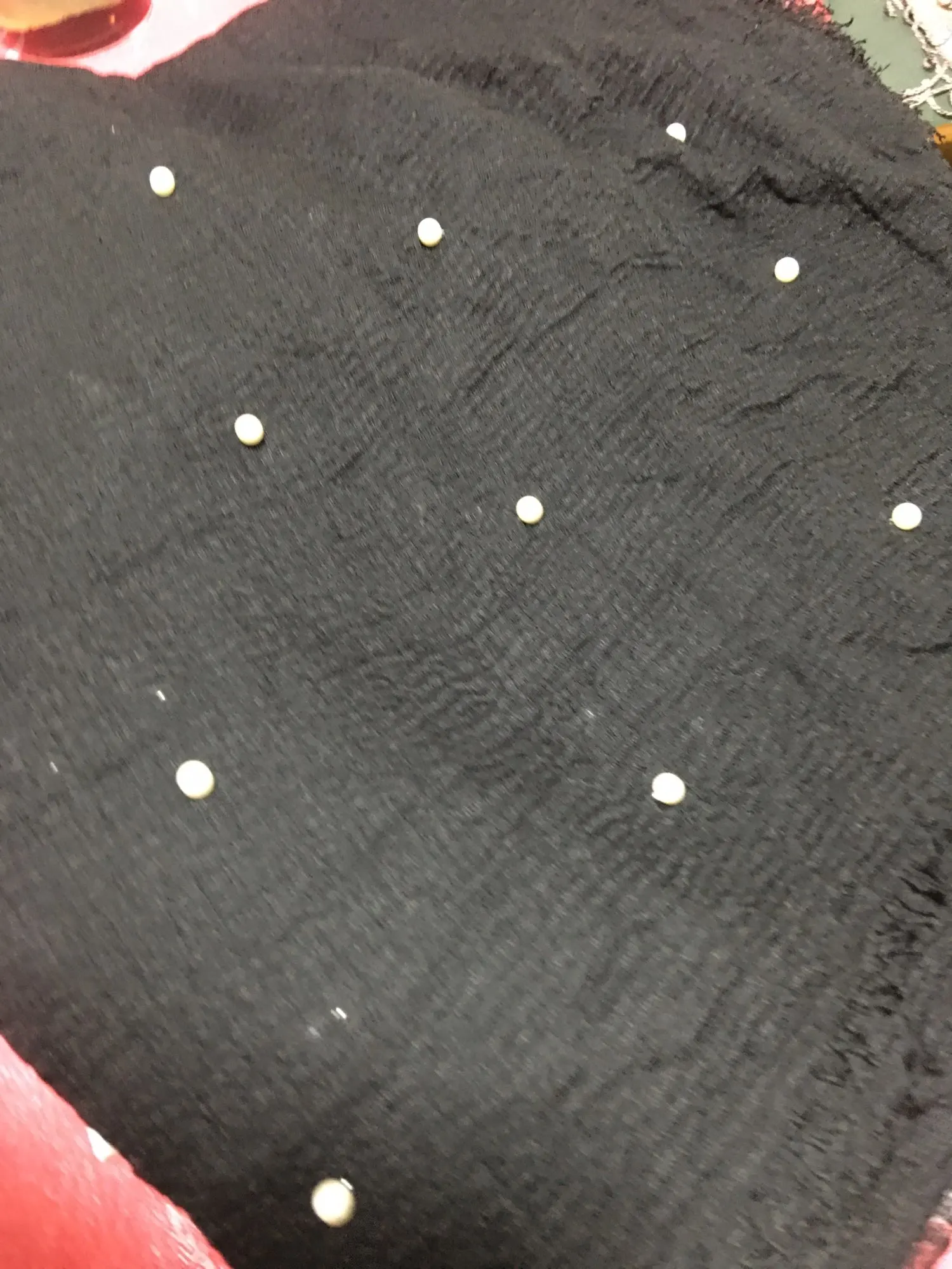 Материал очень мягкий и милый. Решетка материала не выглядит слишком свободной (не выглядит так, как если бы в ней было отверстие) шарф прозрачный, но я бы упаковал его, чтобы он не был материалом. Также Длина по росту и ширине... мне нравится! Жемчужины на нем также очень красивые