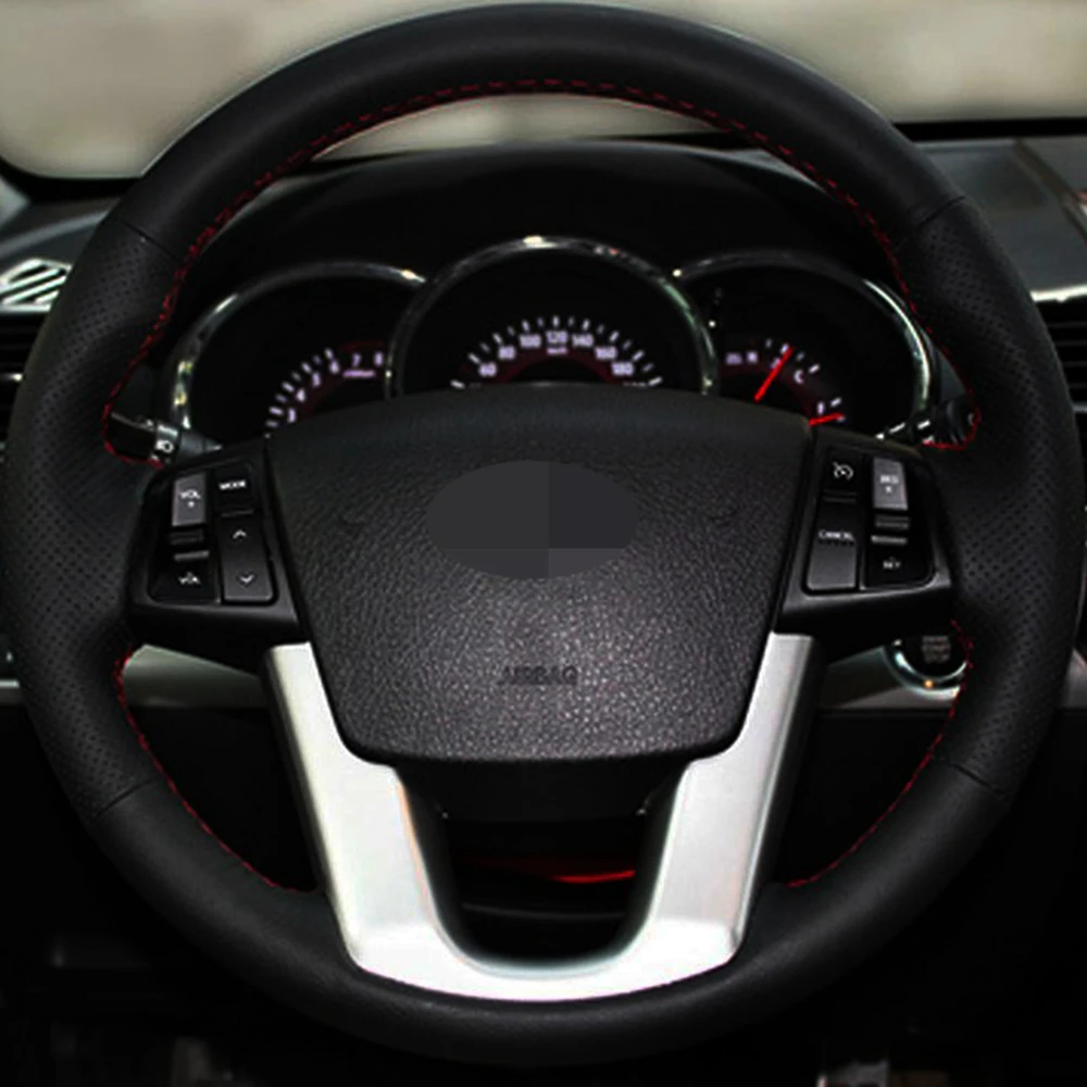 Автомобильные аксессуары, чехол на руль для Kia Cadenza K7 2011-2015, Kia Sorento 2009-2014, черный, сшитый вручную, искусственная кожа