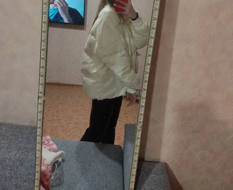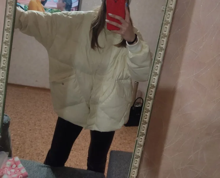 В принципе, пухан как на фото - по цвету и по модели. Но сам по себе тонковат и коротковат . На мой рост 163 см хотелось бы ещё 5-7 см в длине, ну зато по рукавам отлично . На особые холода на него нет смысла рассчитывать , набивка слабенькая , хотя я его отпарила и дала отвисеться . Нитки были , не без того. Этот размер пойдёт до L-ки , так как в груди хорошо прям оверсайз. Ну, за такую цену весьма неплохо