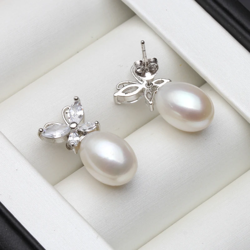 Модные серьги-гвоздики из серебра 925 пробы для женщин, белые серьги из натурального пресноводного жемчуга, ювелирные изделия для свадебной вечеринки, корейская бижутерия