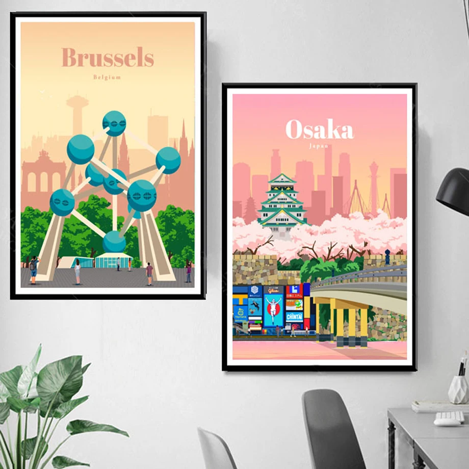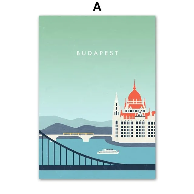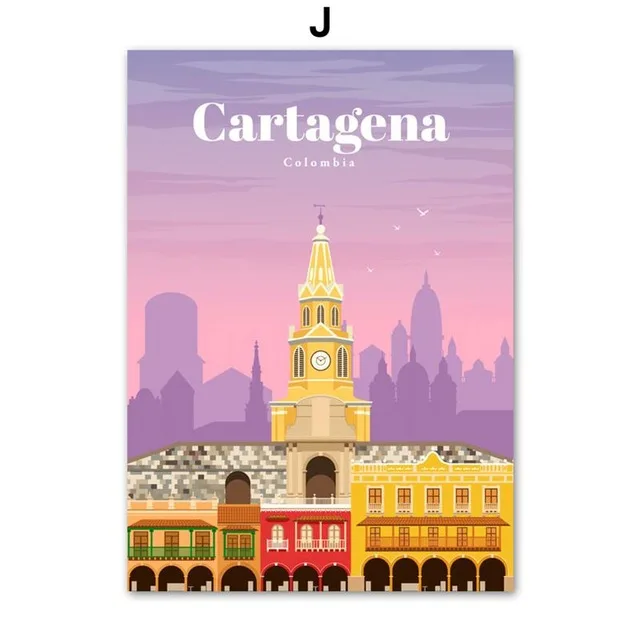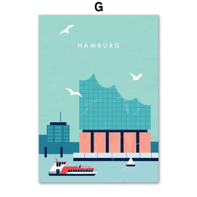 Мультфильм город плакат силуэт люди и природа пейзаж холст Картина Путешествия печать картина стены Искусство украшение дома Куадрос