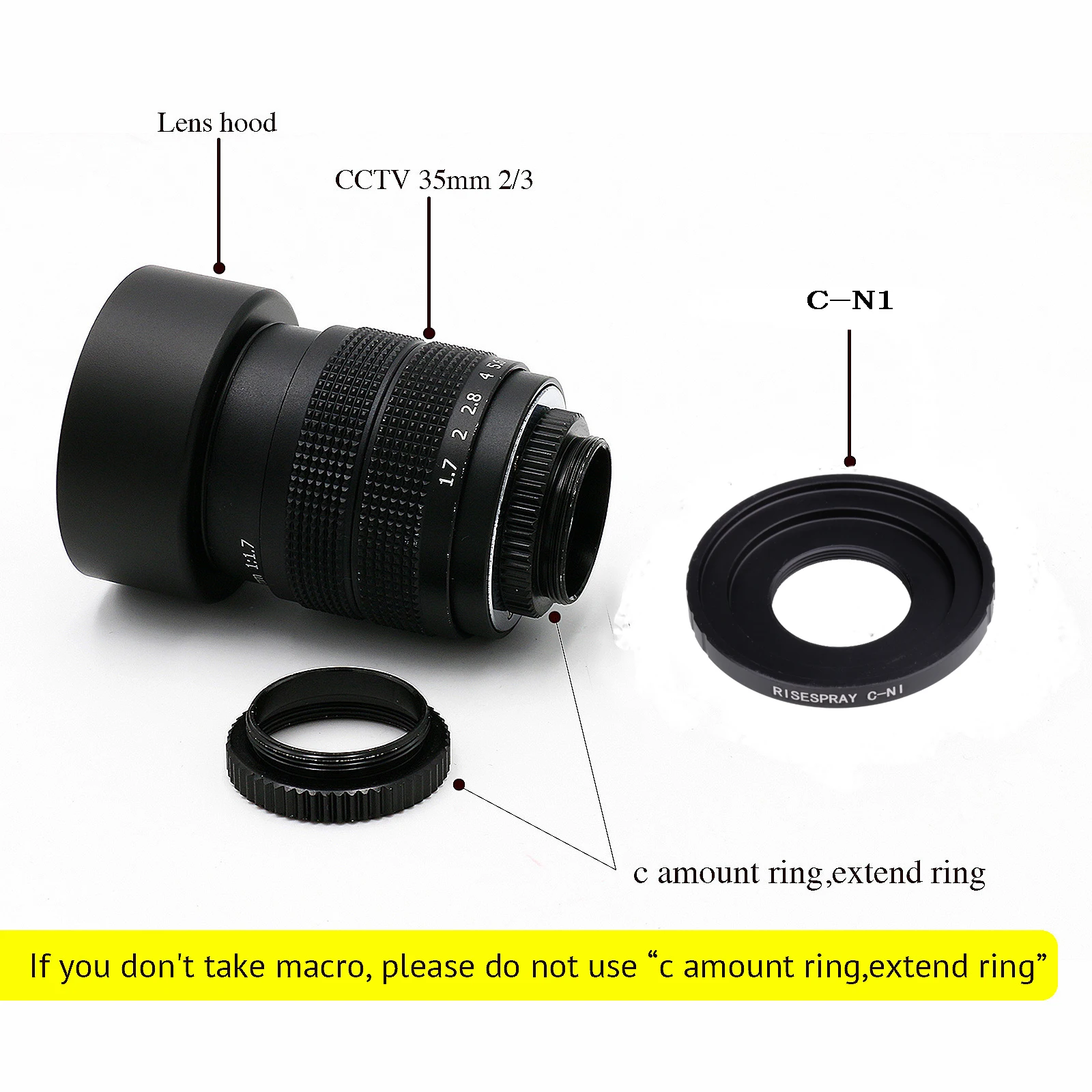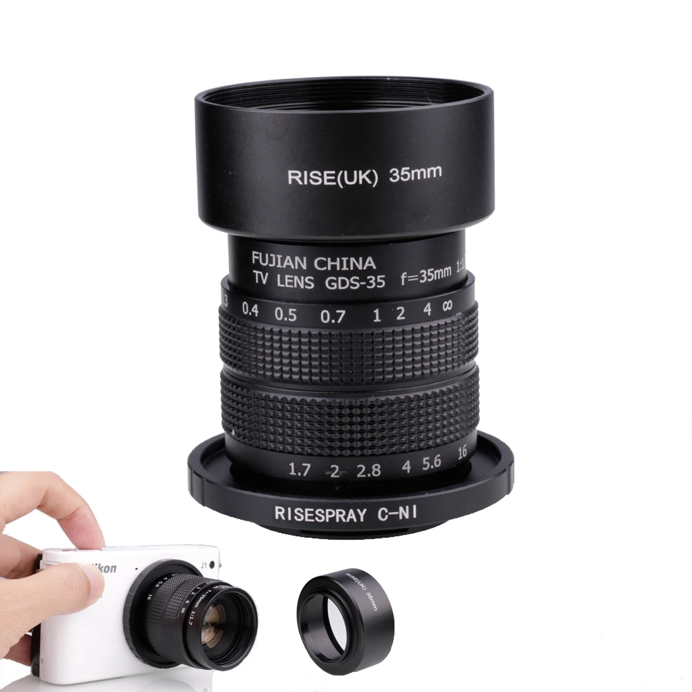 Fujian 35 мм f1,7 APS-C объектив CCTV + переходное кольцо + 2 макрокольца + бленда объектива для беззеркальной камеры NIKON1 J1J2J3J4J5