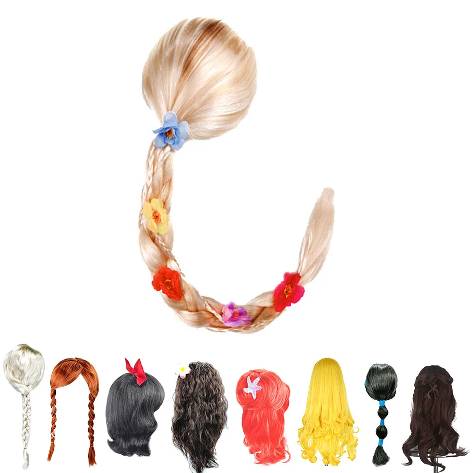От 3 до 12 лет парик принцессы для девочек, детские аксессуары для волос, спутанный жасмин, маленькая Русалочка, Моана, Белоснежка, Эльза, Анна, головной убор
