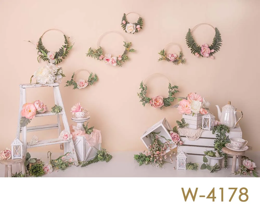 Фон для студийной фотосъемки с пастельным рисунком и цветами