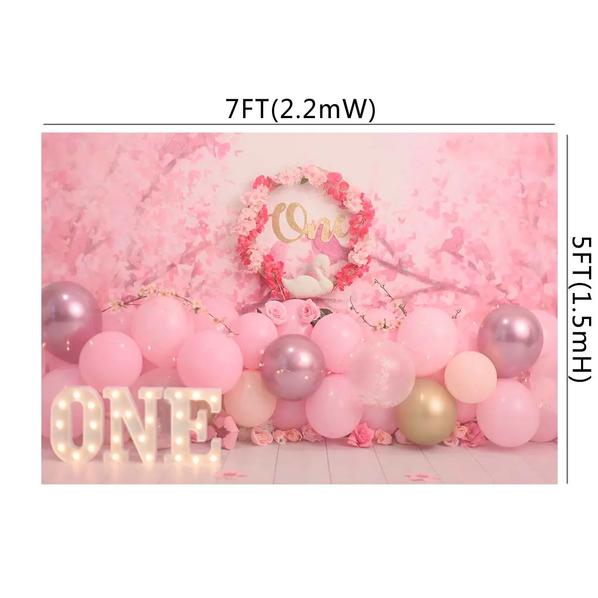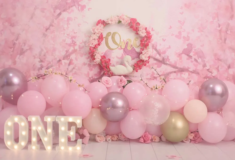 Фон для фотосъемки с изображением девушки на 1-й День рождения пастельный розовый цветочный Лебедь на первый день рождения торт разбиваемый баннер фотосессия портрет
