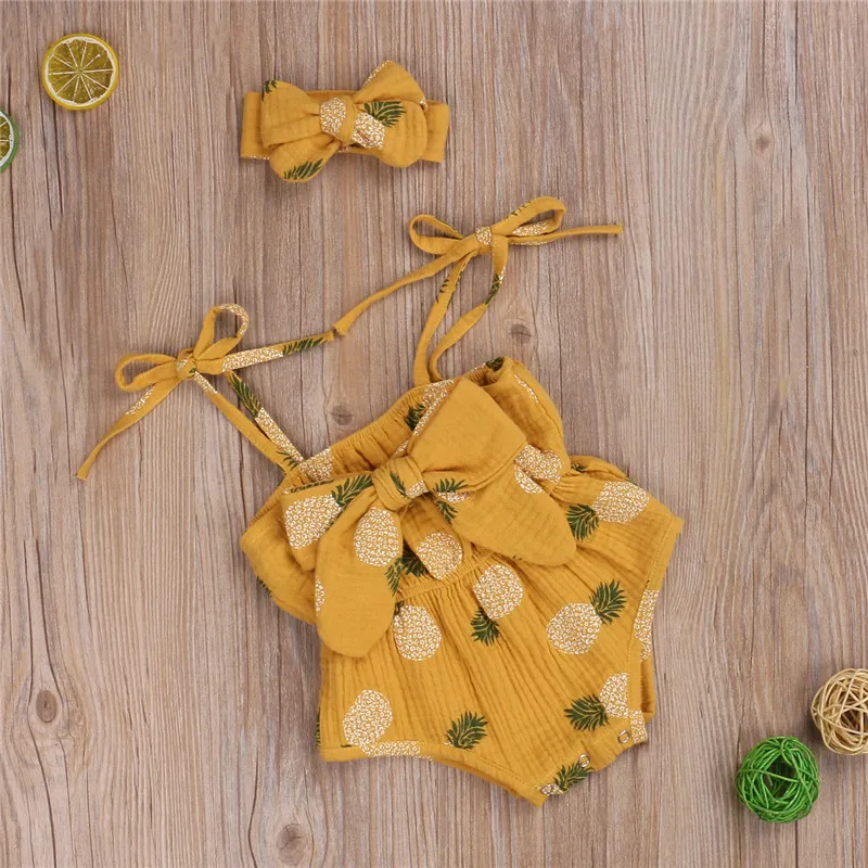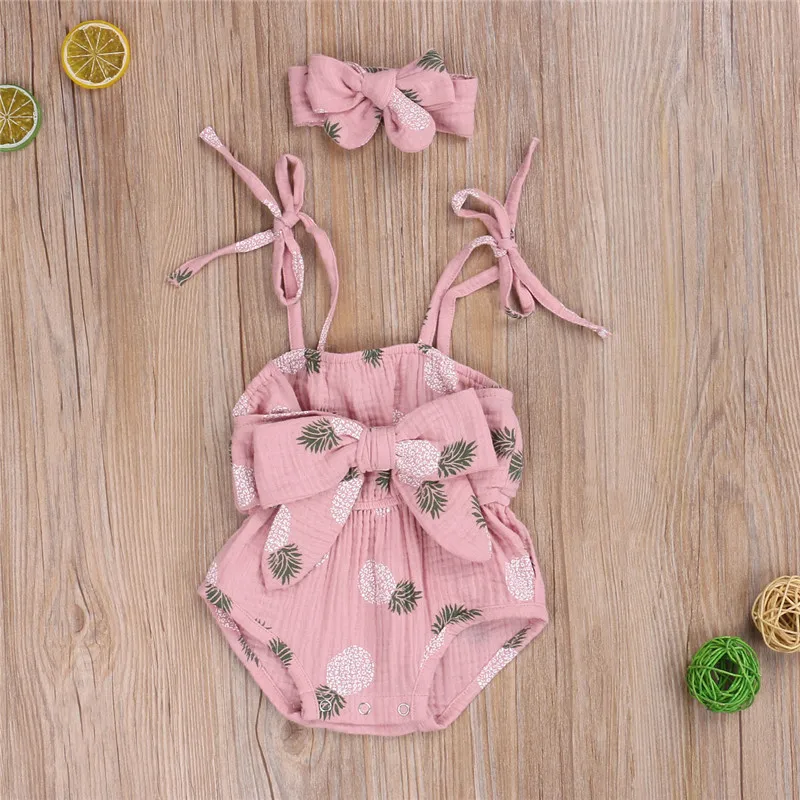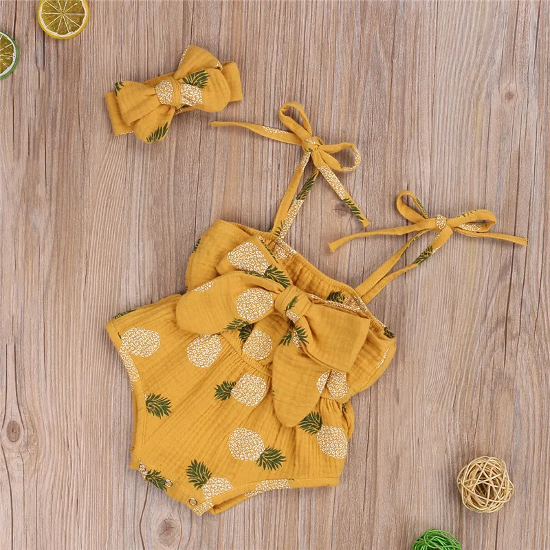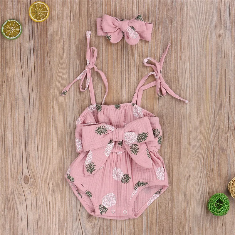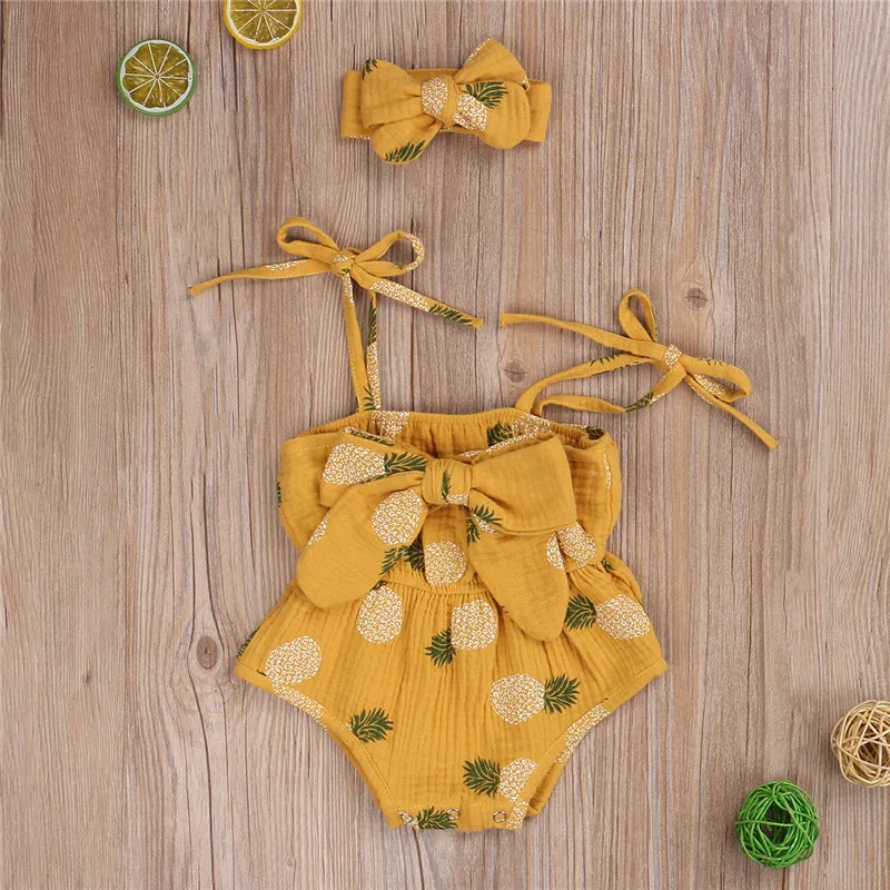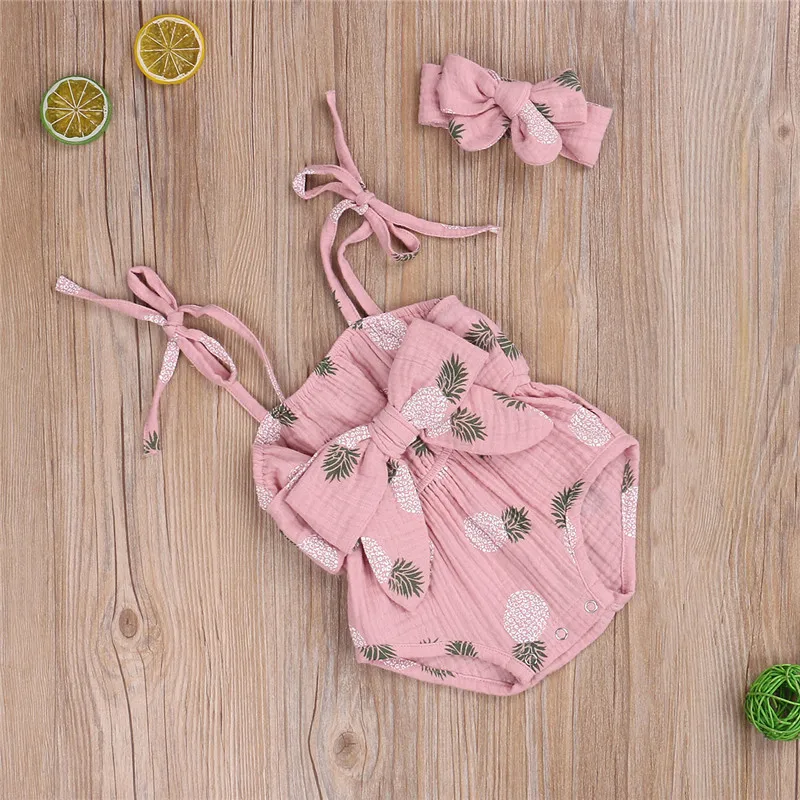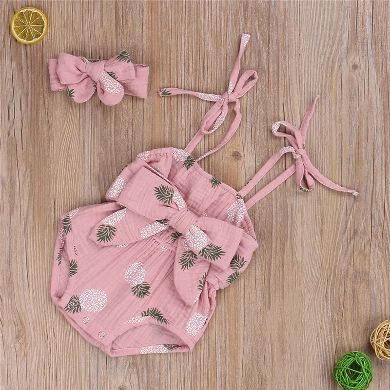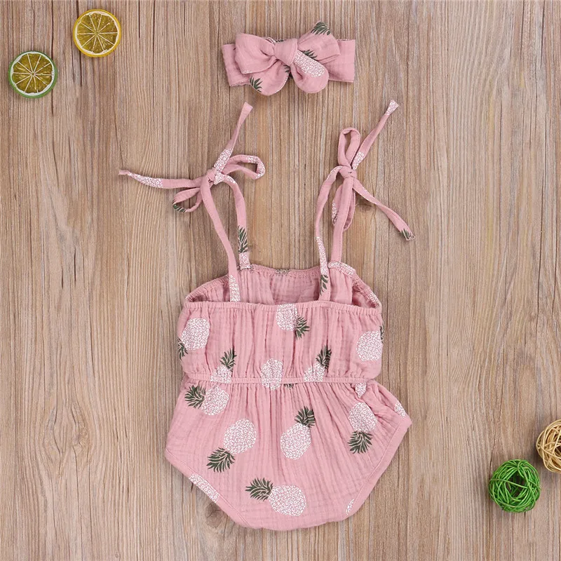 Комбинезон для маленьких девочек 0-24 мес., повязка на голову, 2 шт., комбинезоны без рукавов с цветочнымв горошек и бантом на поясе, комбинезон на лямках из хлопка для маленьких девочек