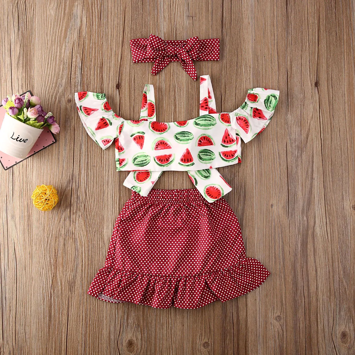 Топ детский летний с открытыми плечами, юбка и повязка на голову, комплект одежды для девочек