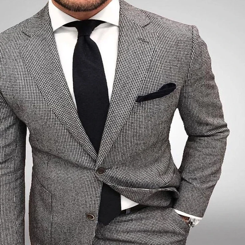 Костюм мужской свадебный из двух предметов серого цвета, с рисунком гусиные лапки, облегающий, деловой, на осень 2020