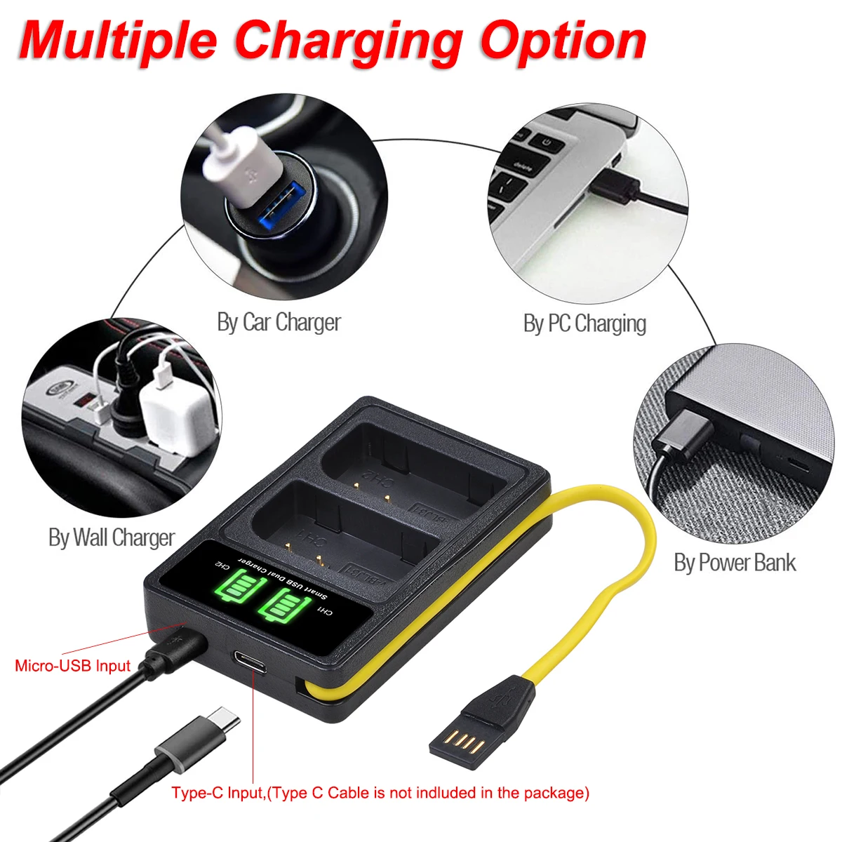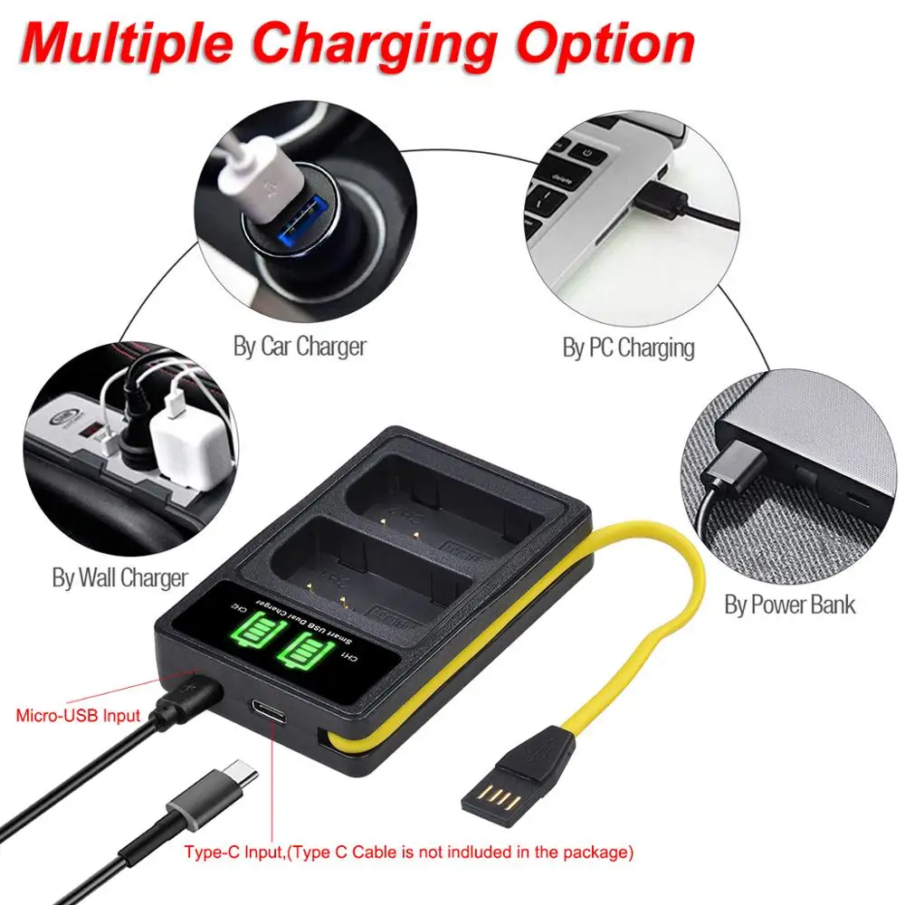 Двойное зарядное устройство USB со светодиодной подсветкой, для фотоаппарата Panasonic