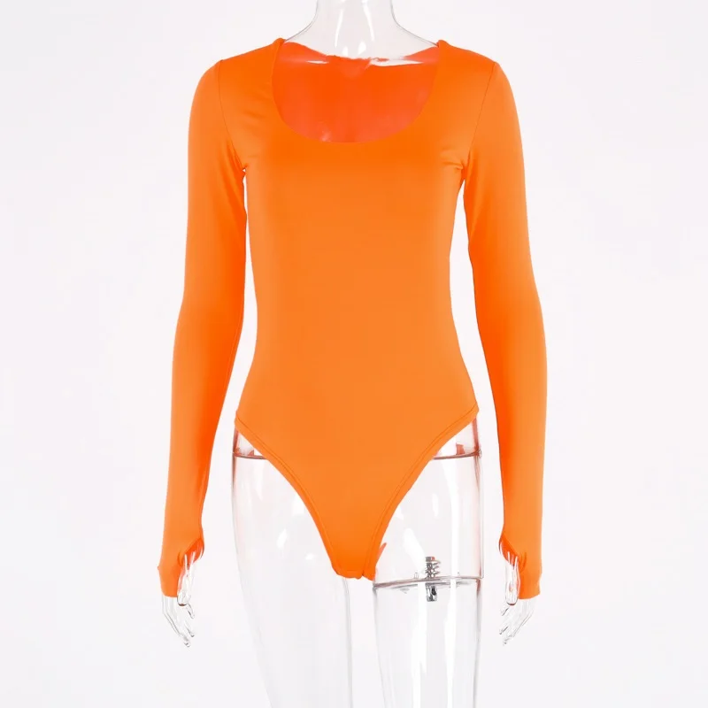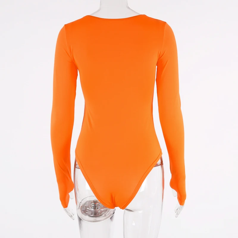 Женский облегающий боди с длинным рукавом, неоновый, оранжевый цвет, Осень-зима 2020, Клубные вечерние костюмы