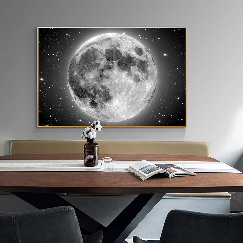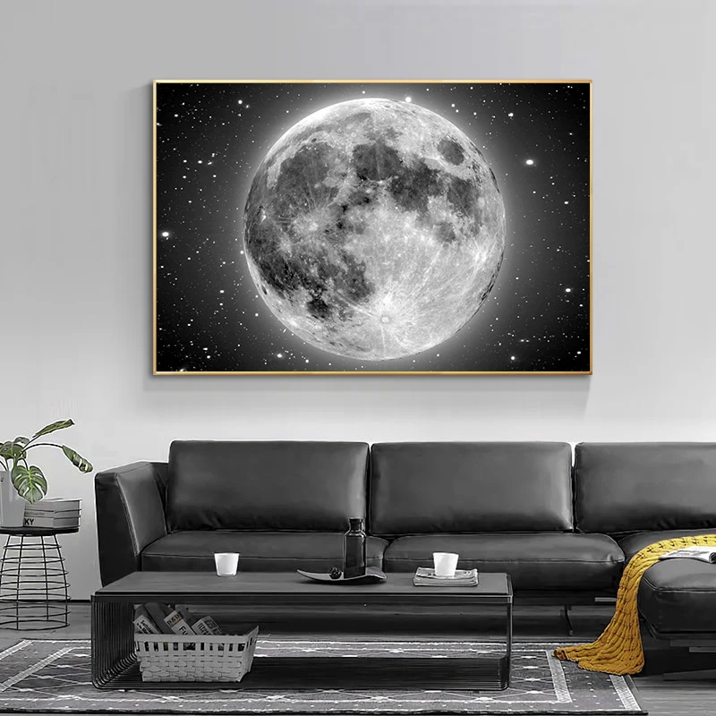 Картина маслом на холсте черно-белая луна, постер, настенное искусство, абстрактные строительные картины для гостиной, домашний декор