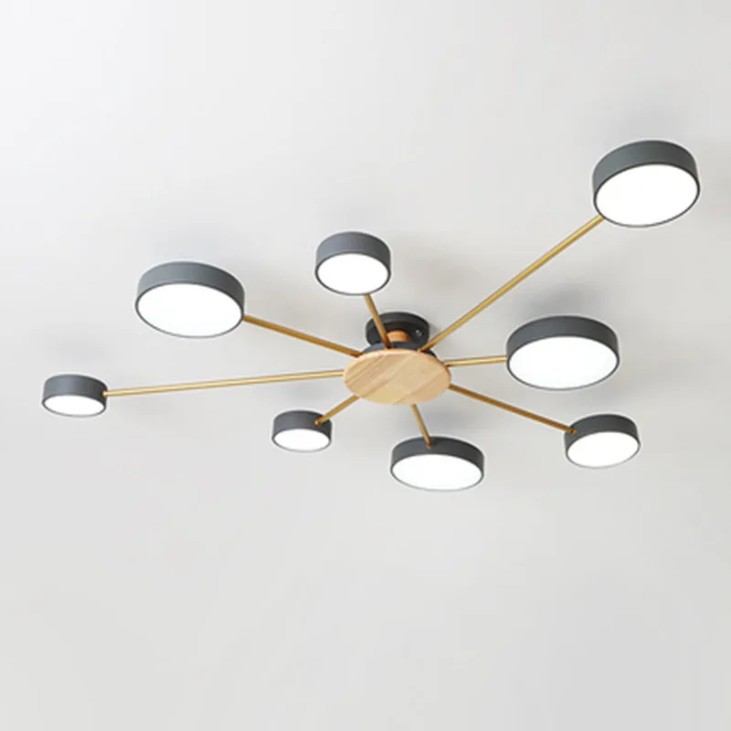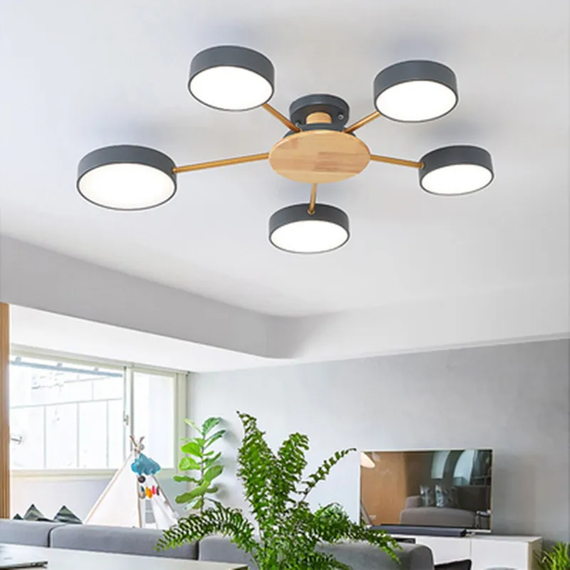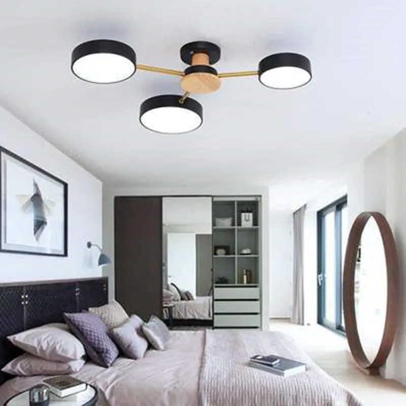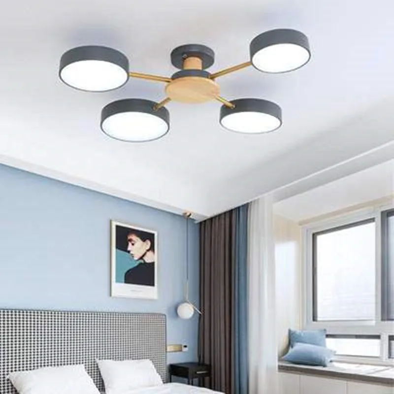 Современная Минималистичная люстра в скандинавском стиле, светодиодный потолочный светильник для спальни, гостиной, индивидуальное железное освещение из дерева и макарона