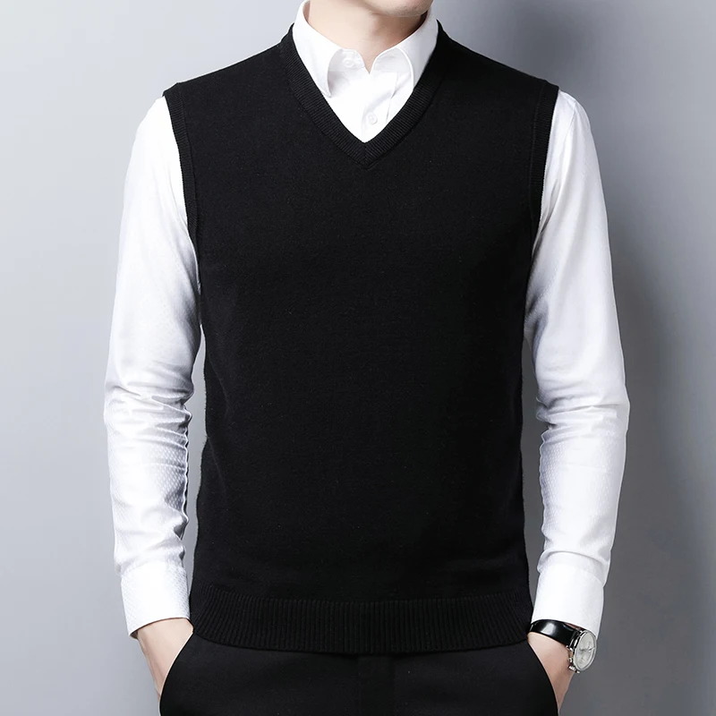 Жилет мужской вязаный шерстяной, утепленный однотонный Повседневный свитер без рукавов, с V-образным вырезом, в офисном стиле, осень