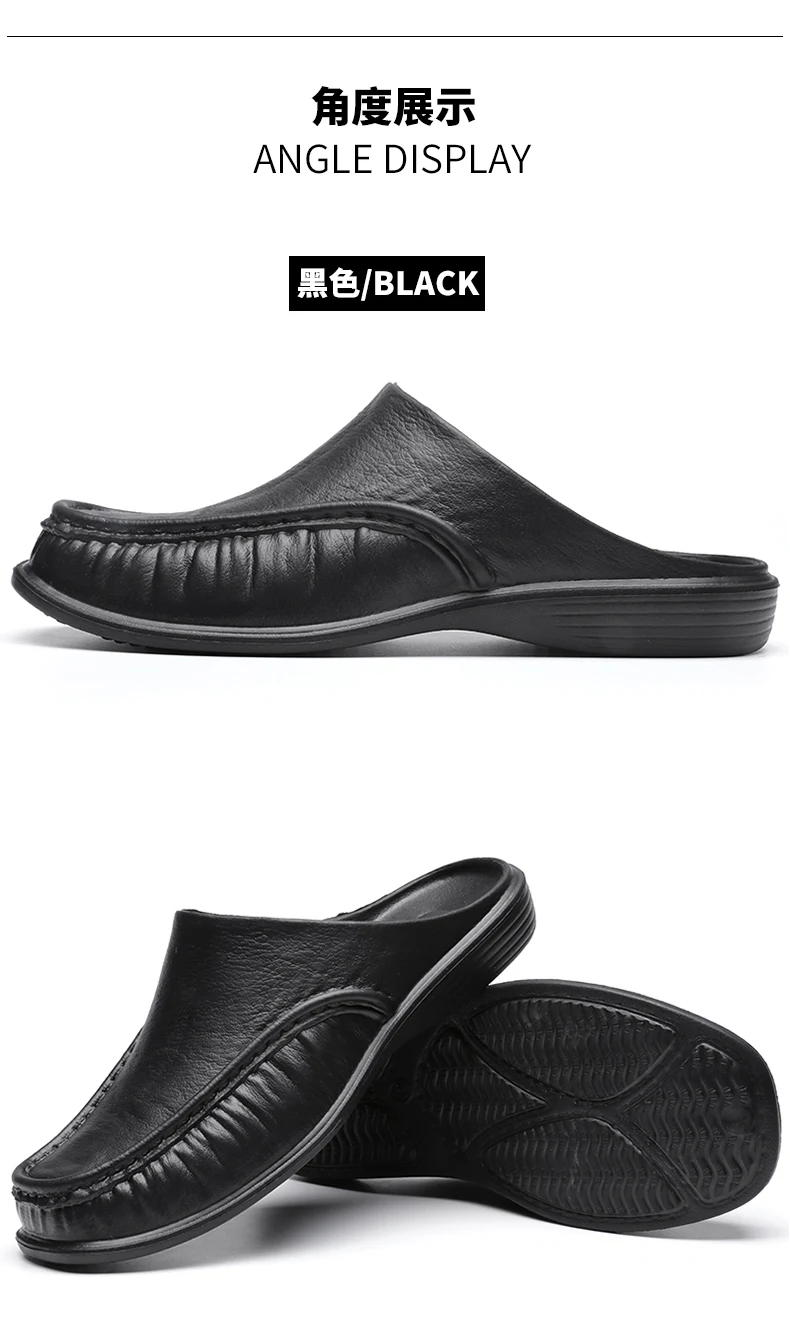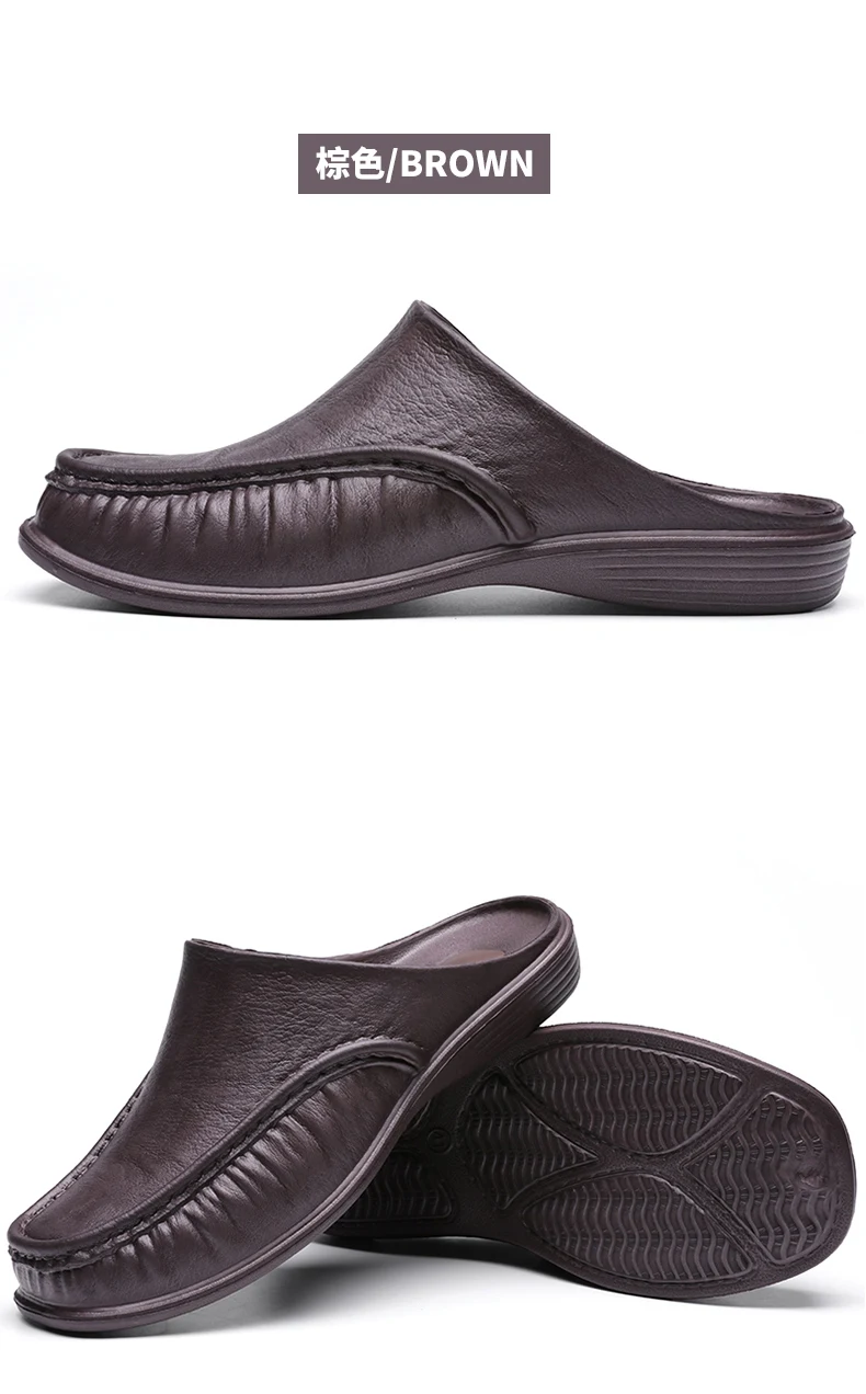 Шлепанцы мужские кожаные, черные, коричневые, весенние, ручной рабо...