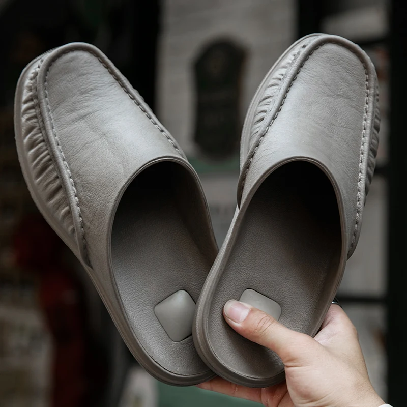 Мужские летние повседневные шлепанцы без застежки, лоферы, мягкие дышащие тапочки для дома и прогулок, размера плюс