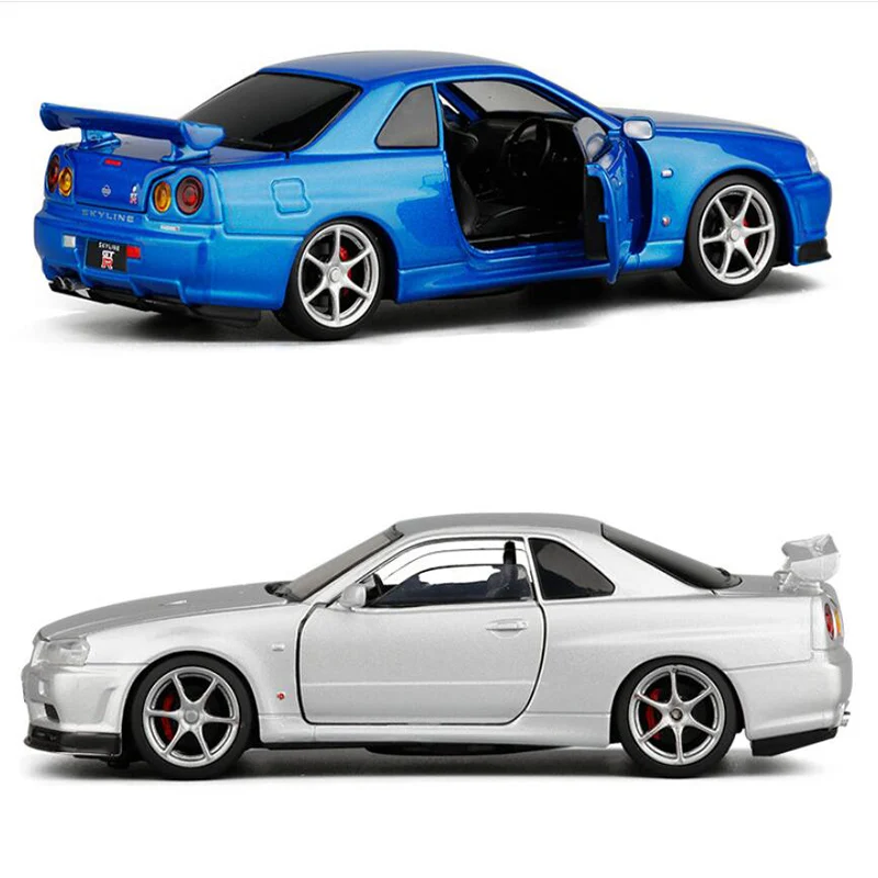 Модель автомобиля из сплава 1:32, новая Nissan-R34, модель автомобиля SKYLINE GTR, Япония JDM, Коллекционная модель автомобиля, звук двери светильник, металлические игрушечные автомобили