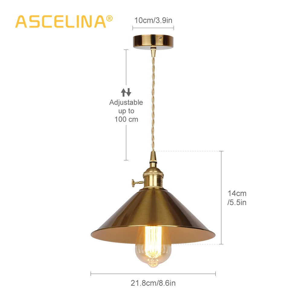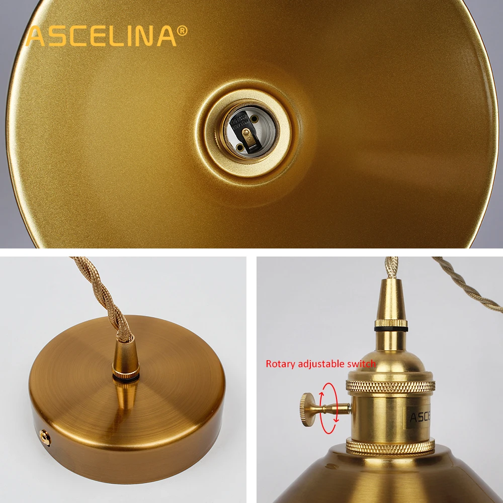 Новый скандинавский подвесной светильник ASCELINA E27, светодиодная винтажная Подвесная лампа с кнопочным выключателем, Подвесная лампа для спальни, гостиной