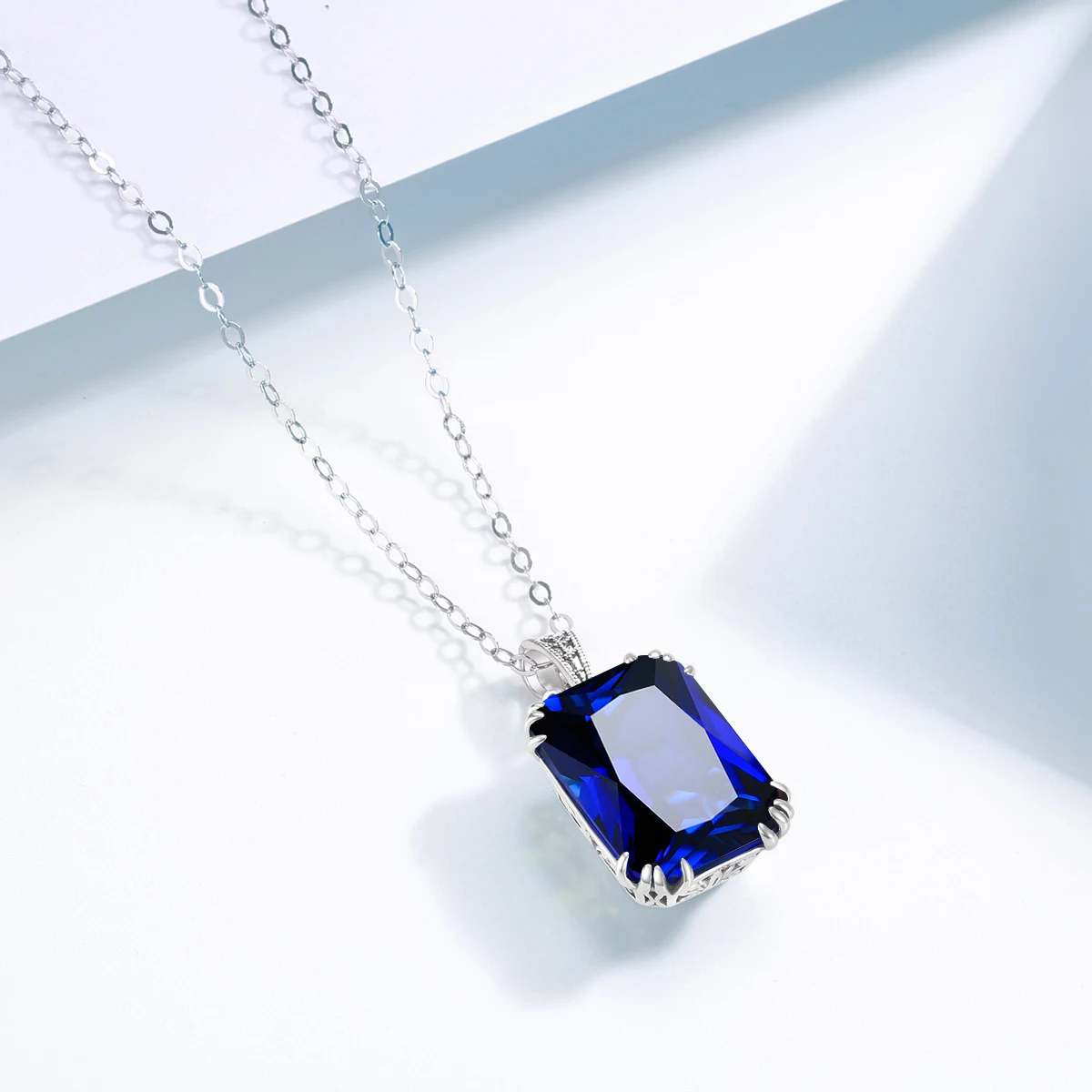 Szjinao Серебряный набор украшений для женщин из натуральной 925 стерлингового серебра прямоугольник синий сапфир, подвеска, серьги, кольцо, хорошее ювелирное изделие