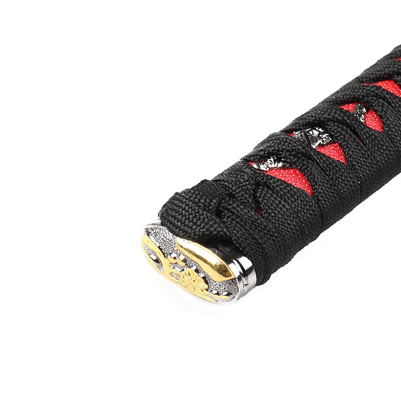Рукоятка переключения меча самурая полностью изготовлена из стали для долговечности, с переплетением ткани из полиэстера и акцентами из никелированной латуни.