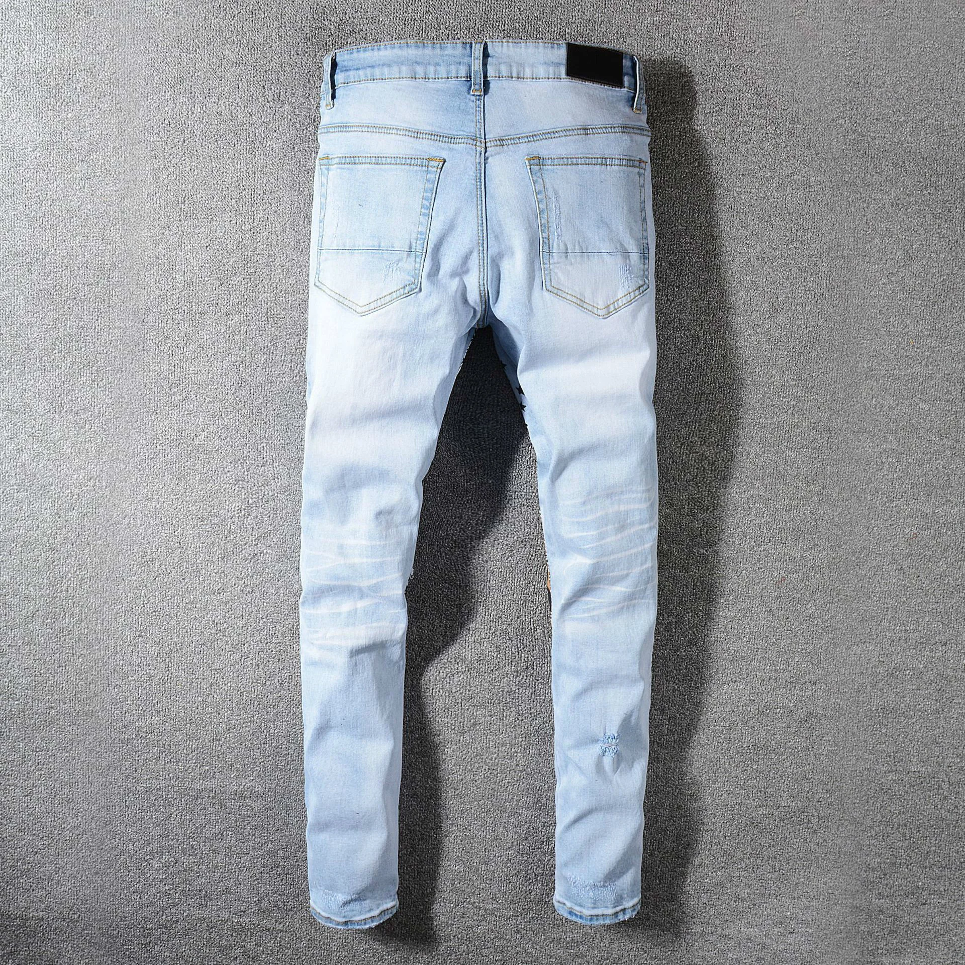 Мужские джинсы с леопардовым принтом и заклепками, светло-голубые рваные джинсовые брюки скинни на молнии с карманами и дырками, 2020