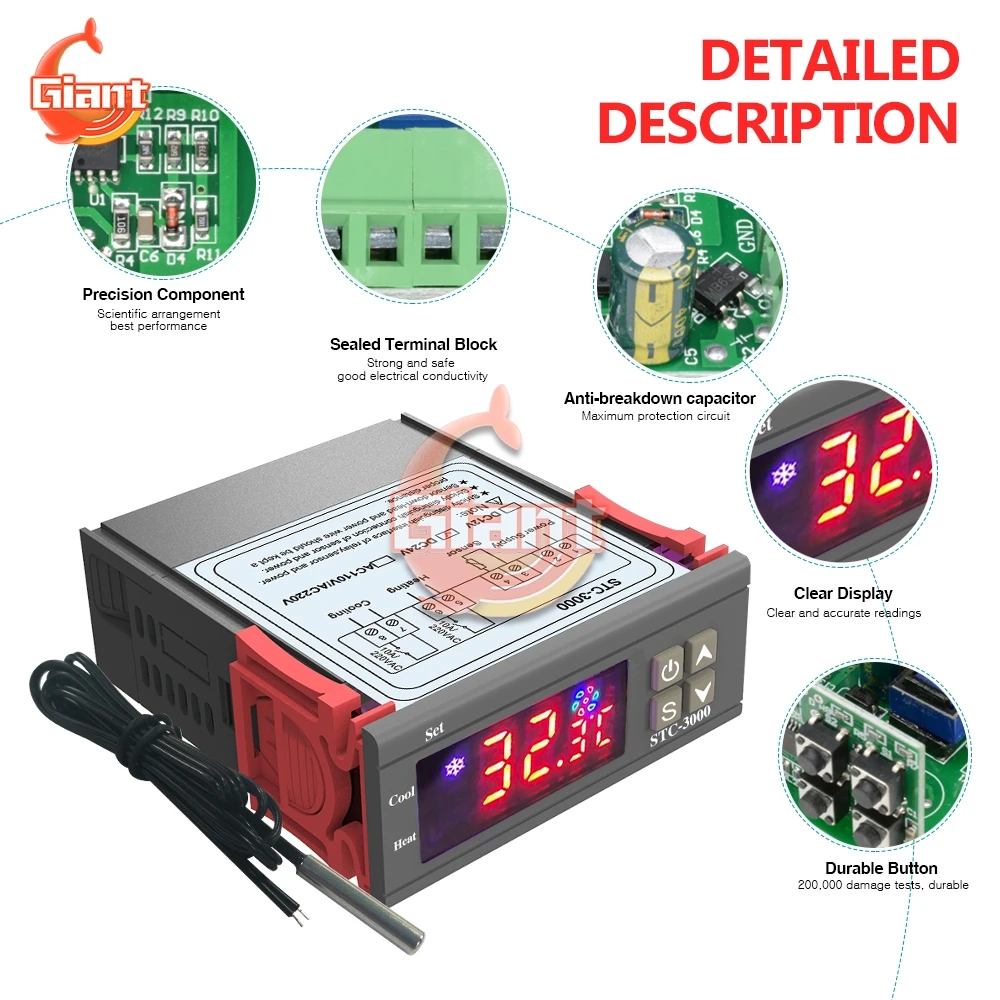 STC-3000 DC 24V термостат модуль датчика температуры цифровой регулятор температуры реле нагрева охлаждения для инкубатора бойлер