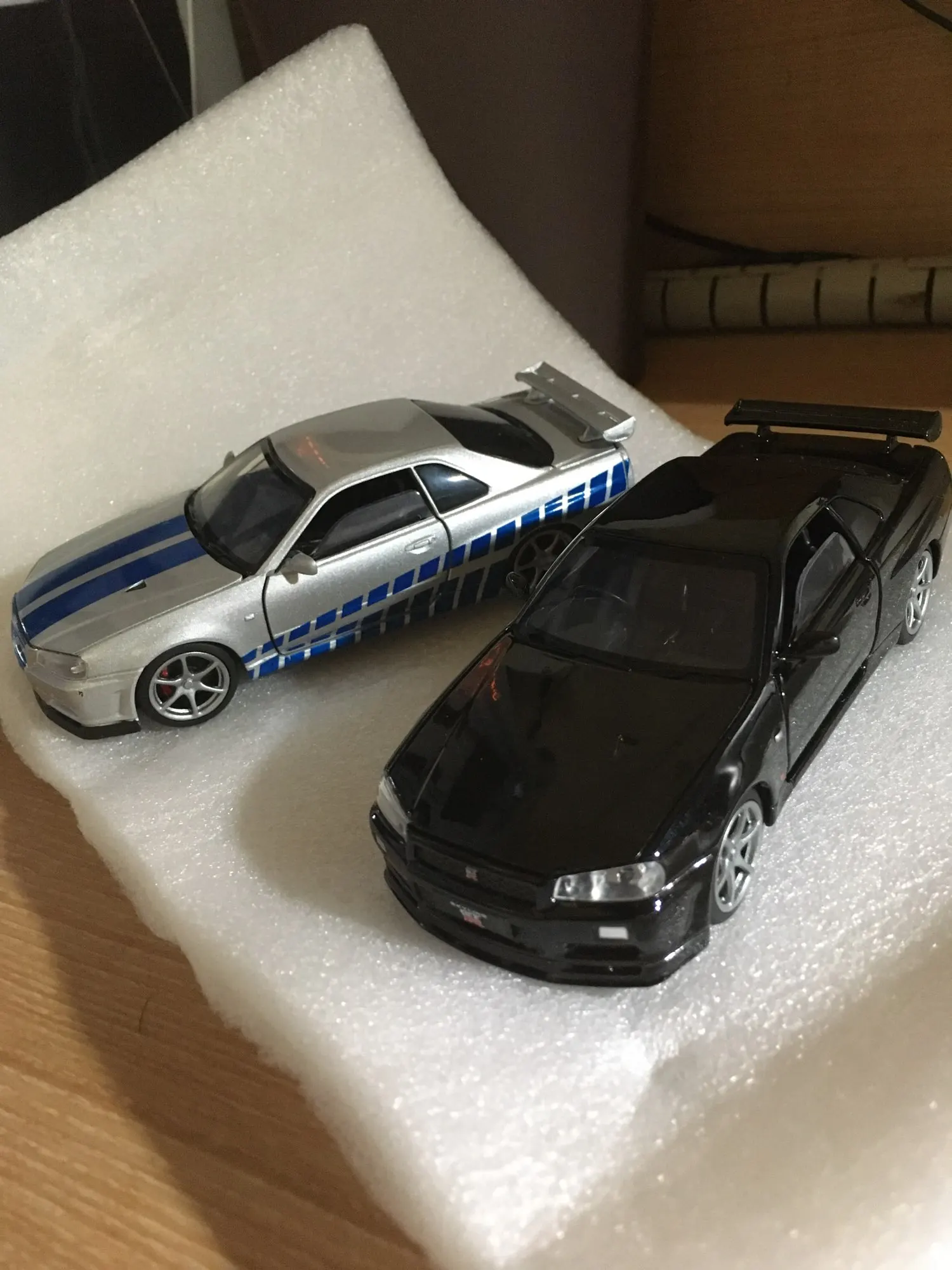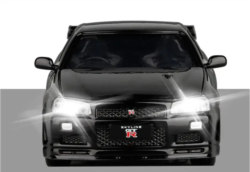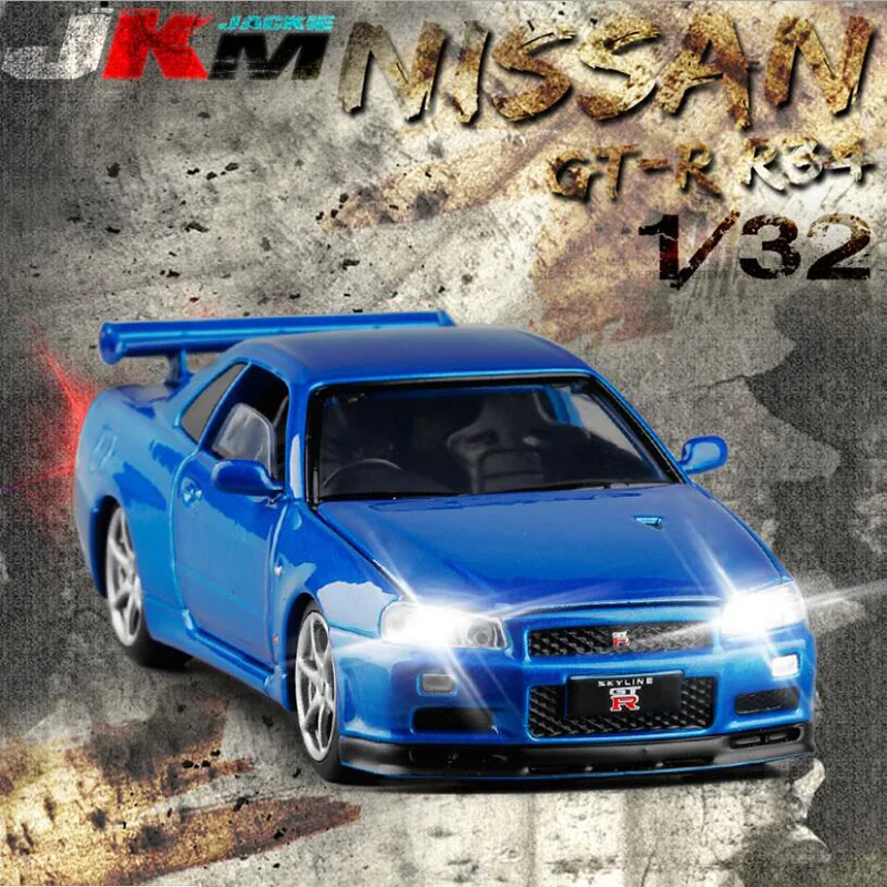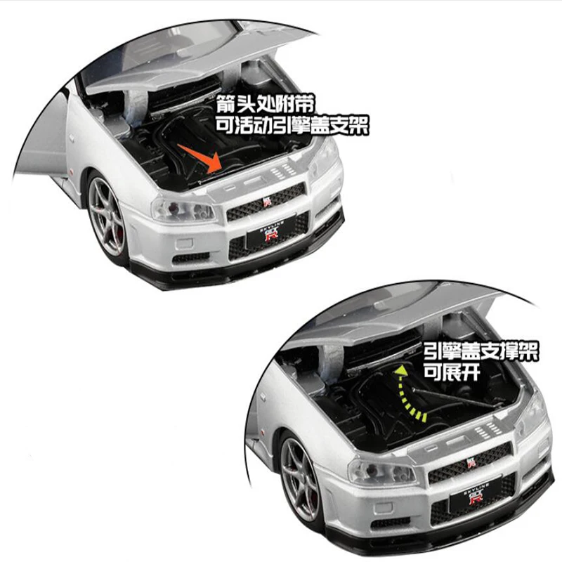 Модель автомобиля R34 SKYLINE GTR из сплава, коллекция японских машин JDM, металлическая литая игрушка для мальчиков с подсветкой и звуком дверей, 1:32