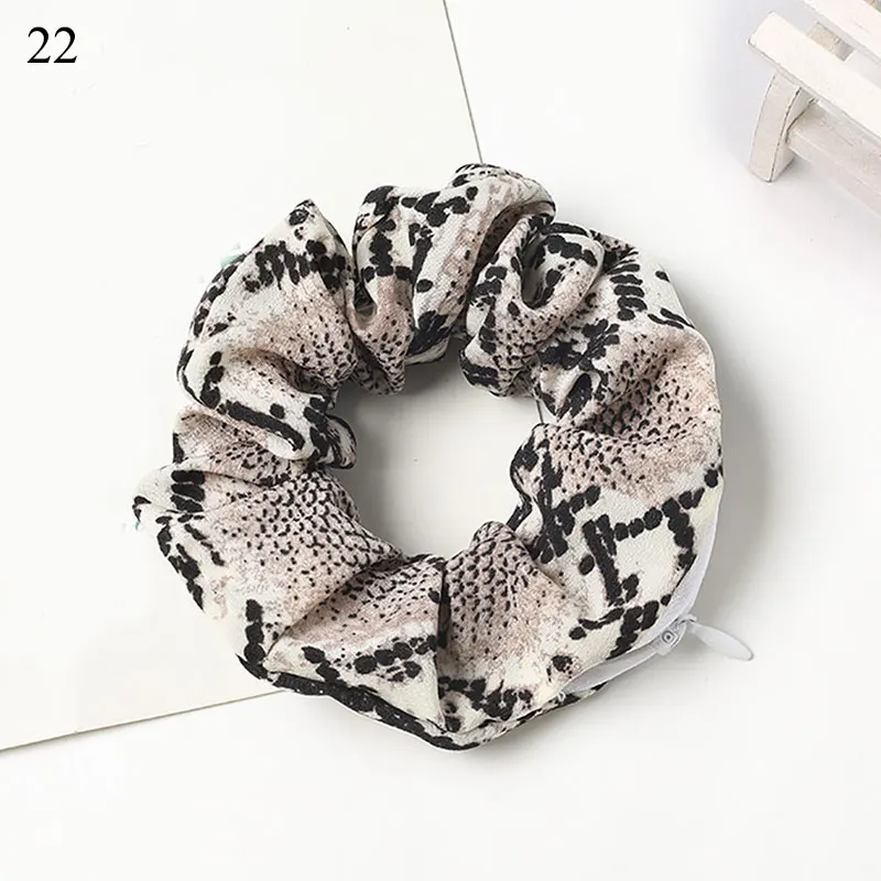 Однотонные резинки для волос на молнии с леопардовым змеиным принто...