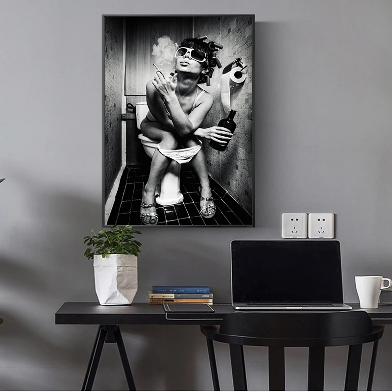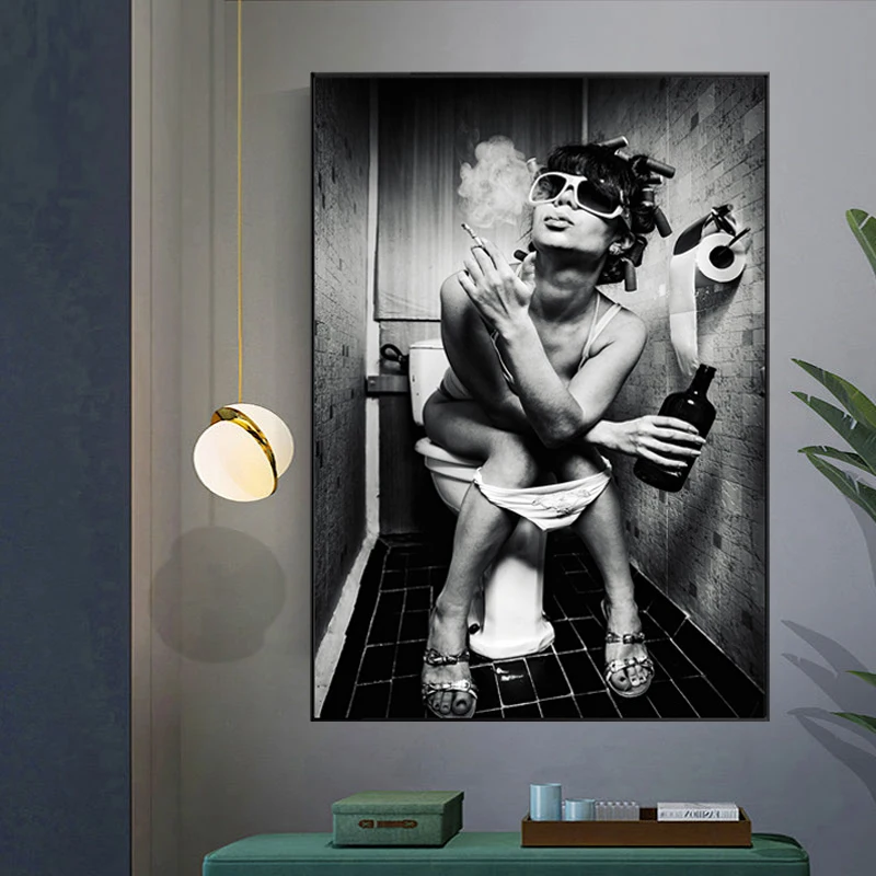 Сексуальная женщина на унитаз стены плакаты и женщина с сигаретой рисунок в стиле Поп-Арт холст черный и белый холст для домашнего декора стены