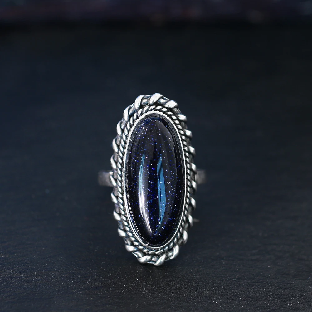 Женское кольцо из серебра 925 пробы, с голубым песком