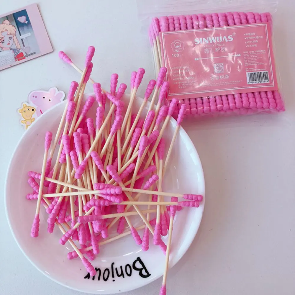 100 шт.упак. розовый двойной головкой тампона ватных палочек женски...