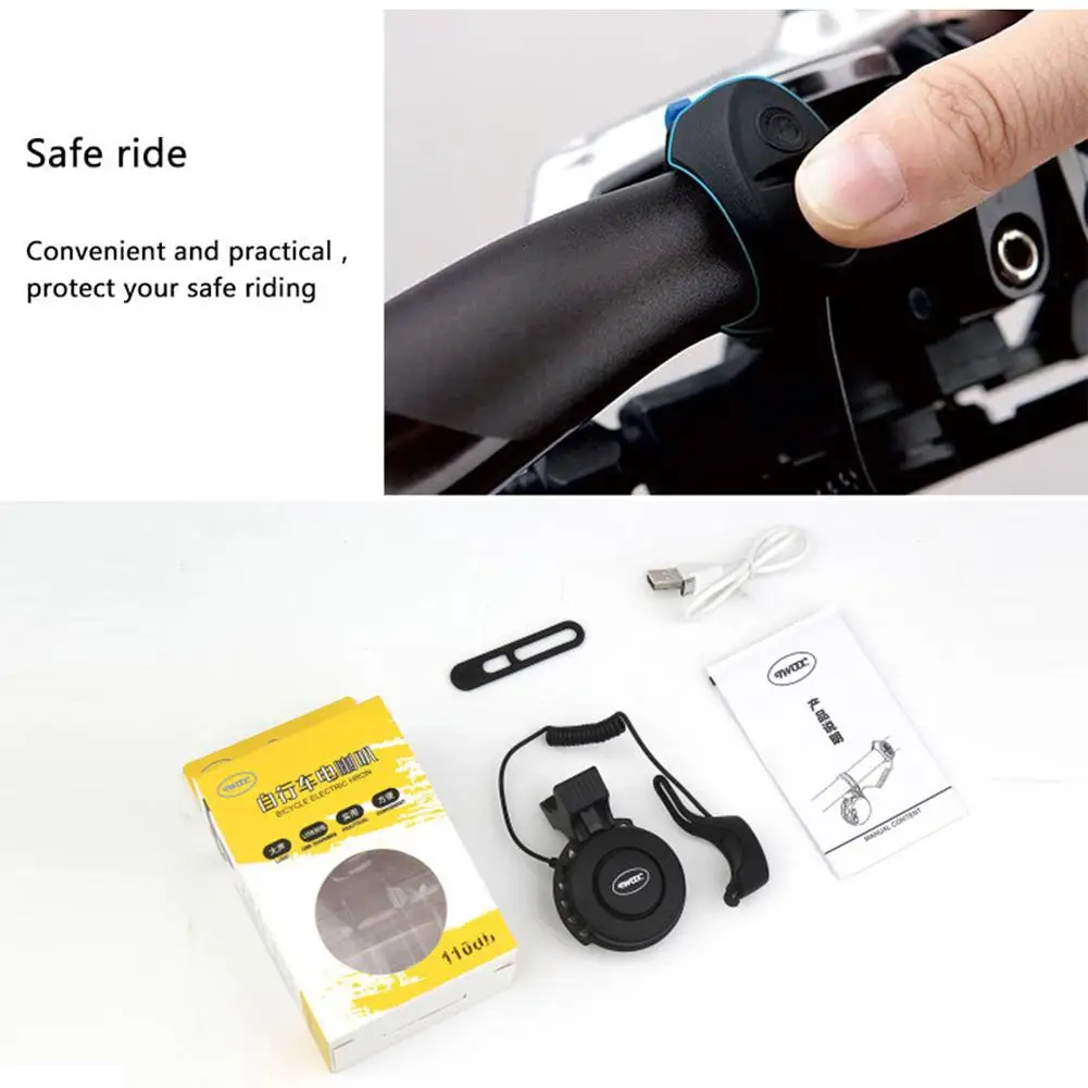 Велосипедный звонок TWOOC T-002, Водонепроницаемый Электронный велосипедный гудок 110-120 дБ, 4 режима звука, перезаряжаемый аккумулятор