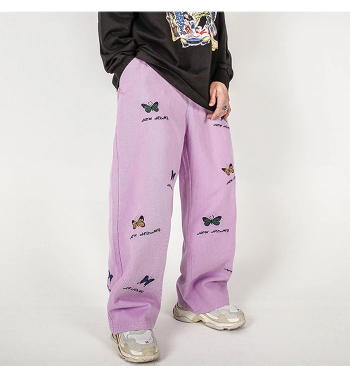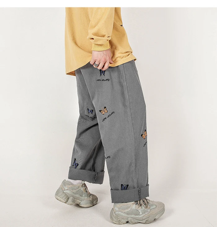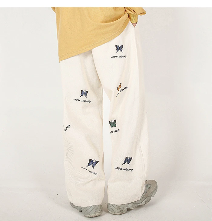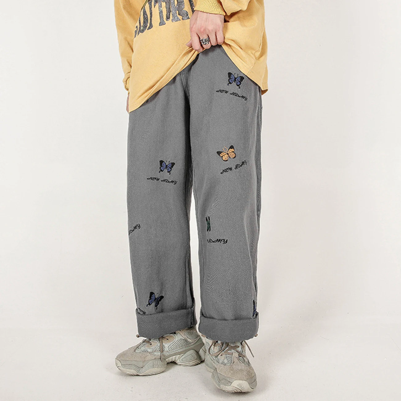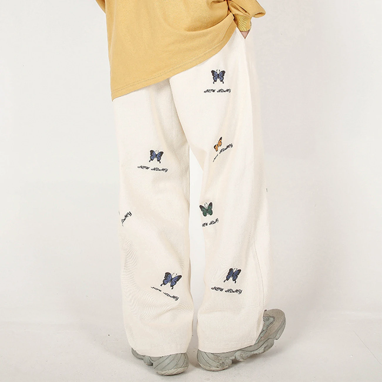Брюки мужские прямые хлопковые с принтом бабочки, уличная одежда, винтажные повседневные свободные штаны с эластичным поясом, Джоггеры в стиле хип-хоп, Харадзюку