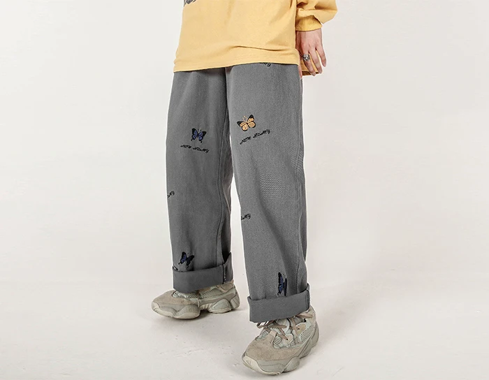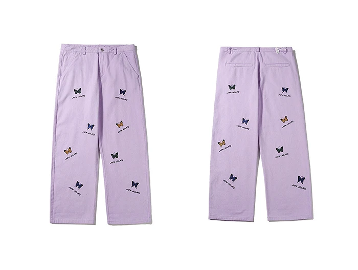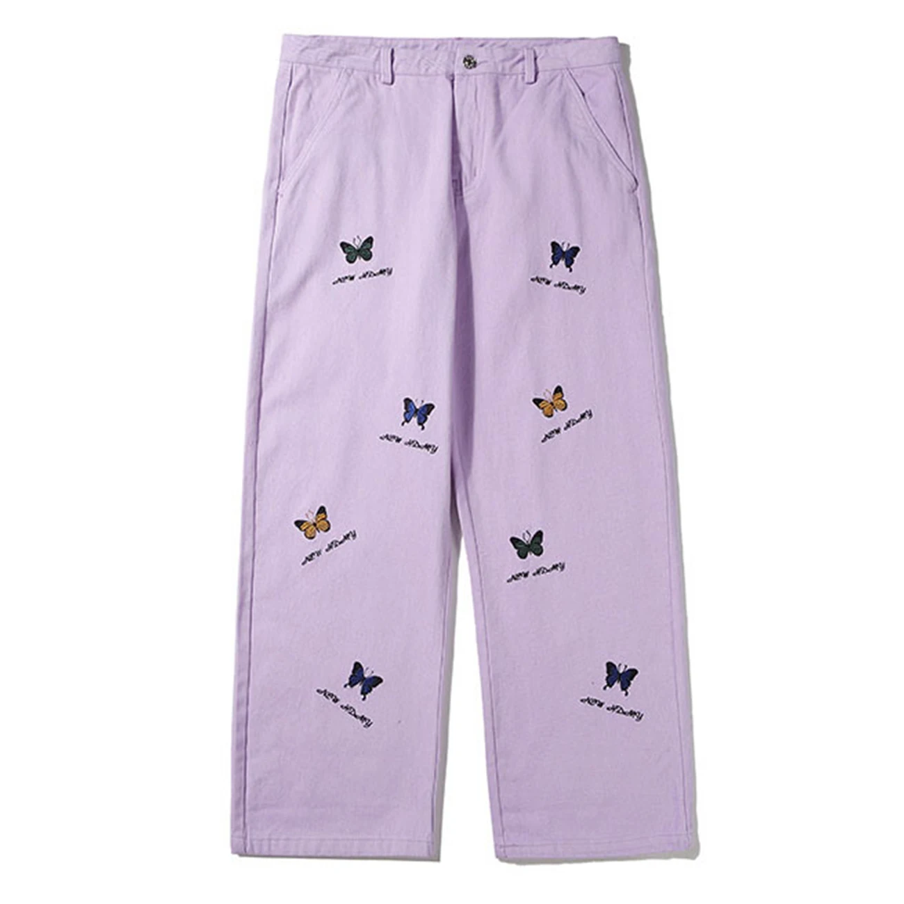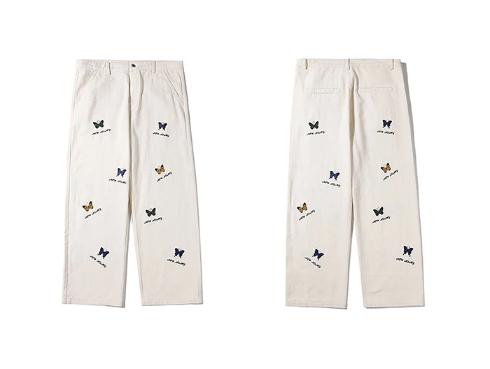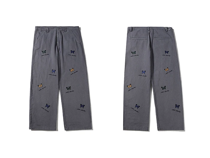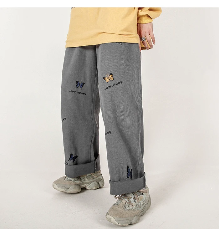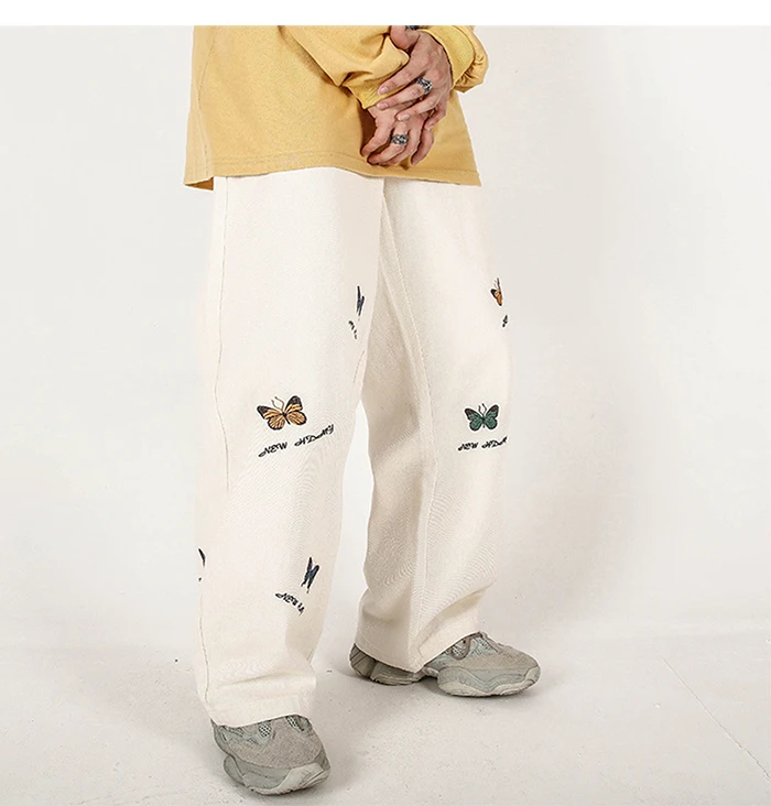 Брюки мужские прямые хлопковые с принтом бабочки, уличная одежда, винтажные повседневные свободные штаны с эластичным поясом, Джоггеры в стиле хип-хоп, Харадзюку